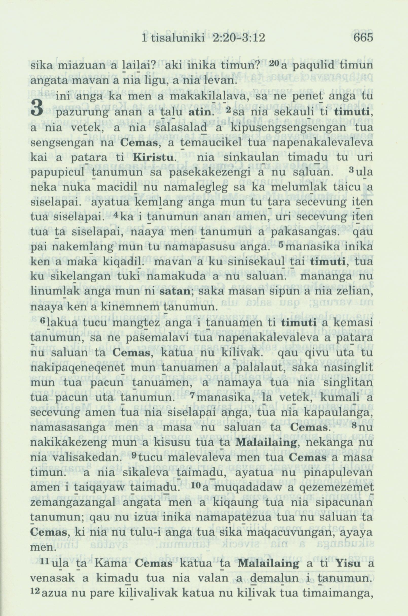 1993年新舊約全書 帖撒羅尼迦前書 2 章 20 節到 3 章 12 節