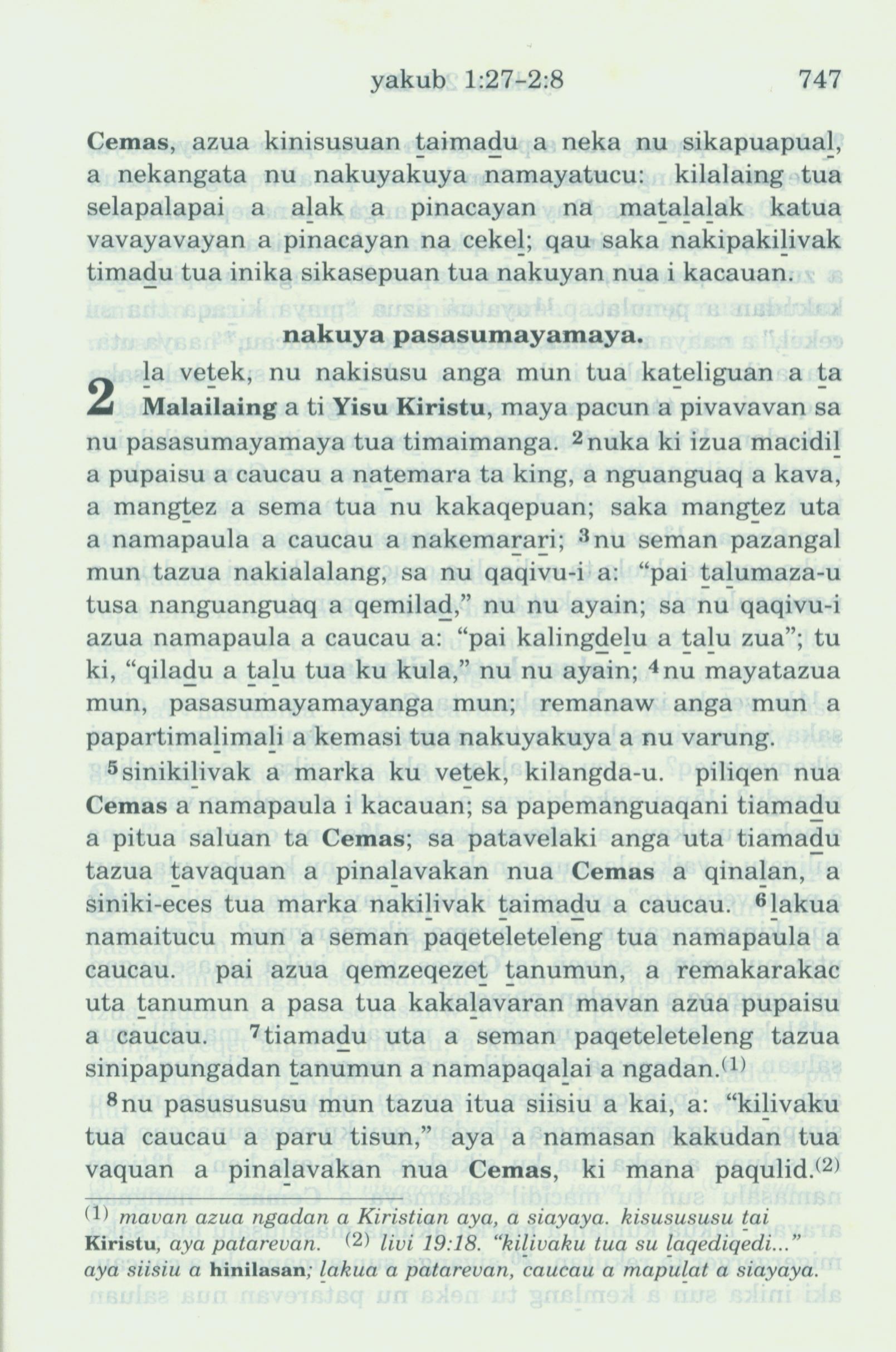 1993年新舊約全書 雅各書 1 章 27 節到 2 章 8 節
