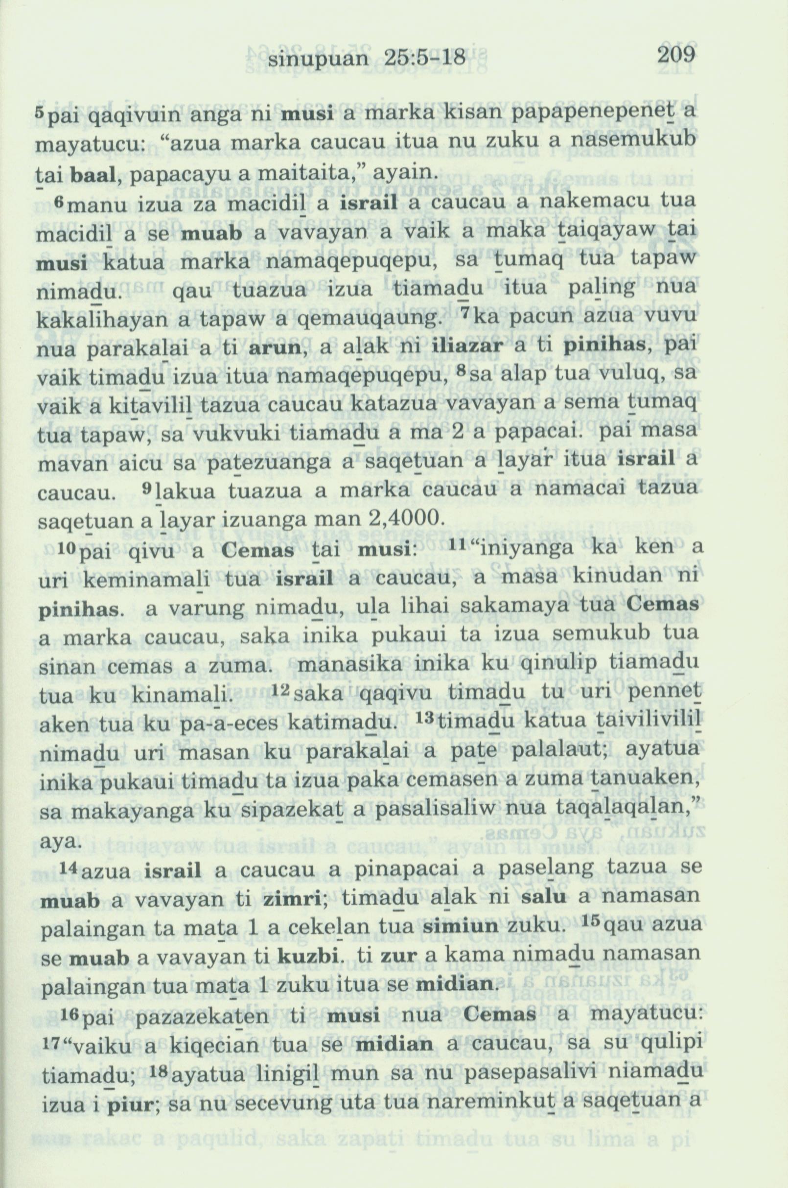 1993年新舊約全書 民數記 25 章 5 節到 25 章 18 節