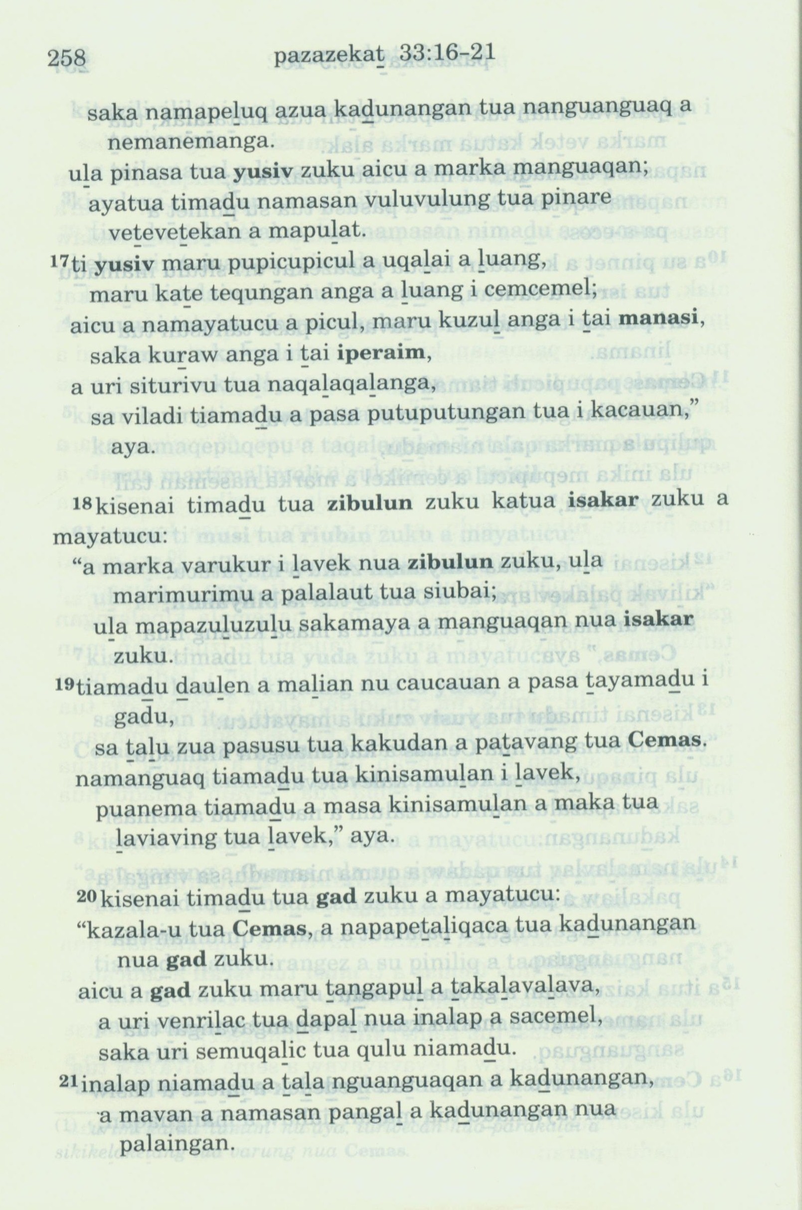 1993年新舊約全書 申命記 33 章 17 節到 33 章 21 節