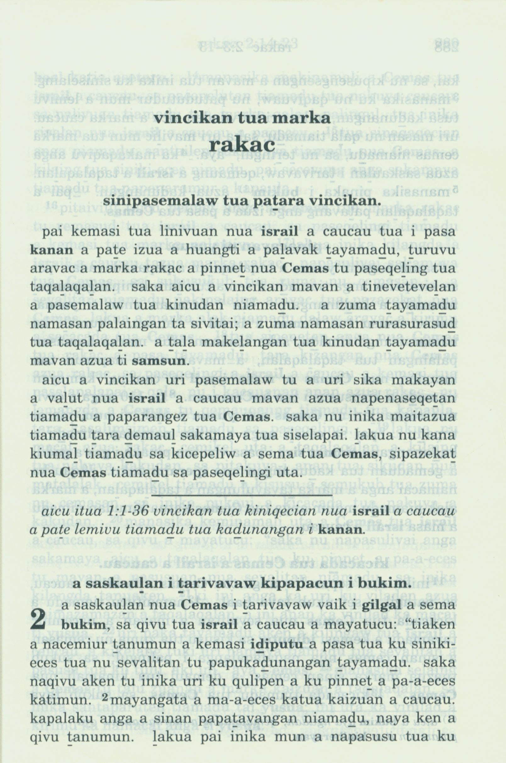 1993年新舊約全書 士師記 1 章 1 節到 2 章 2 節
