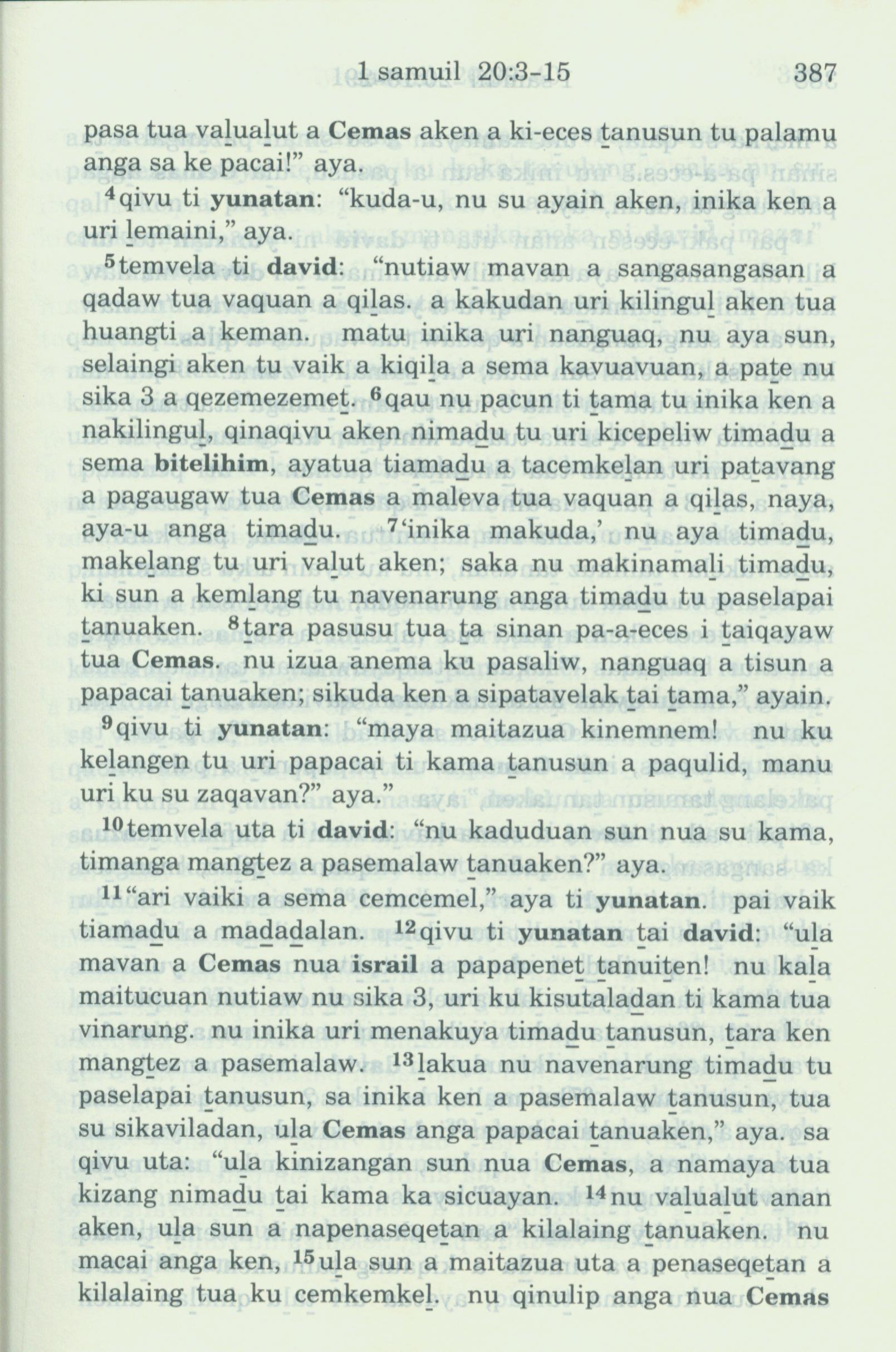 1993年新舊約全書 撒母耳記上 20 章 4 節到 20 章 15 節