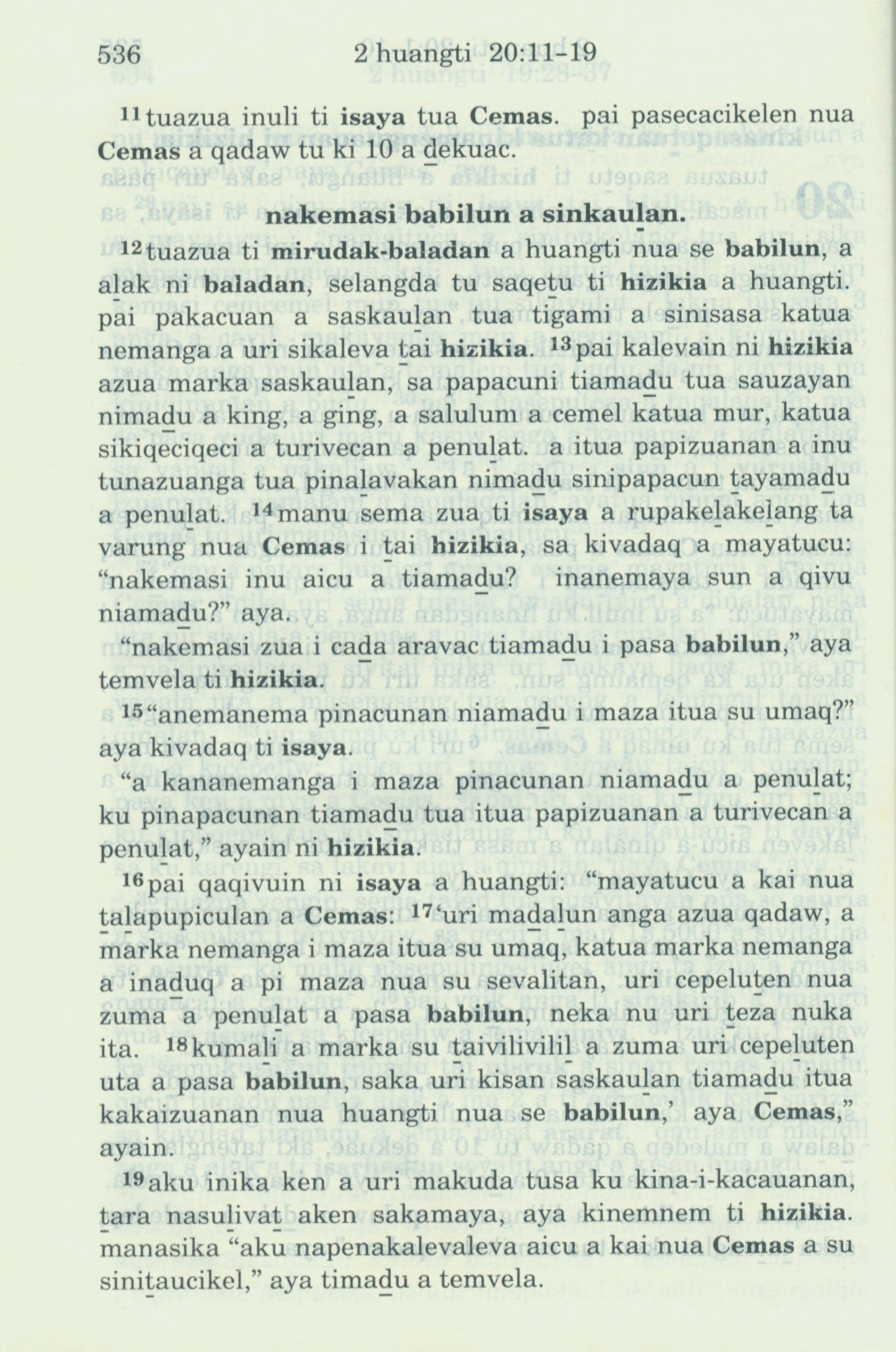 1993年新舊約全書 列王紀下 20 章 11 節到 20 章 19 節