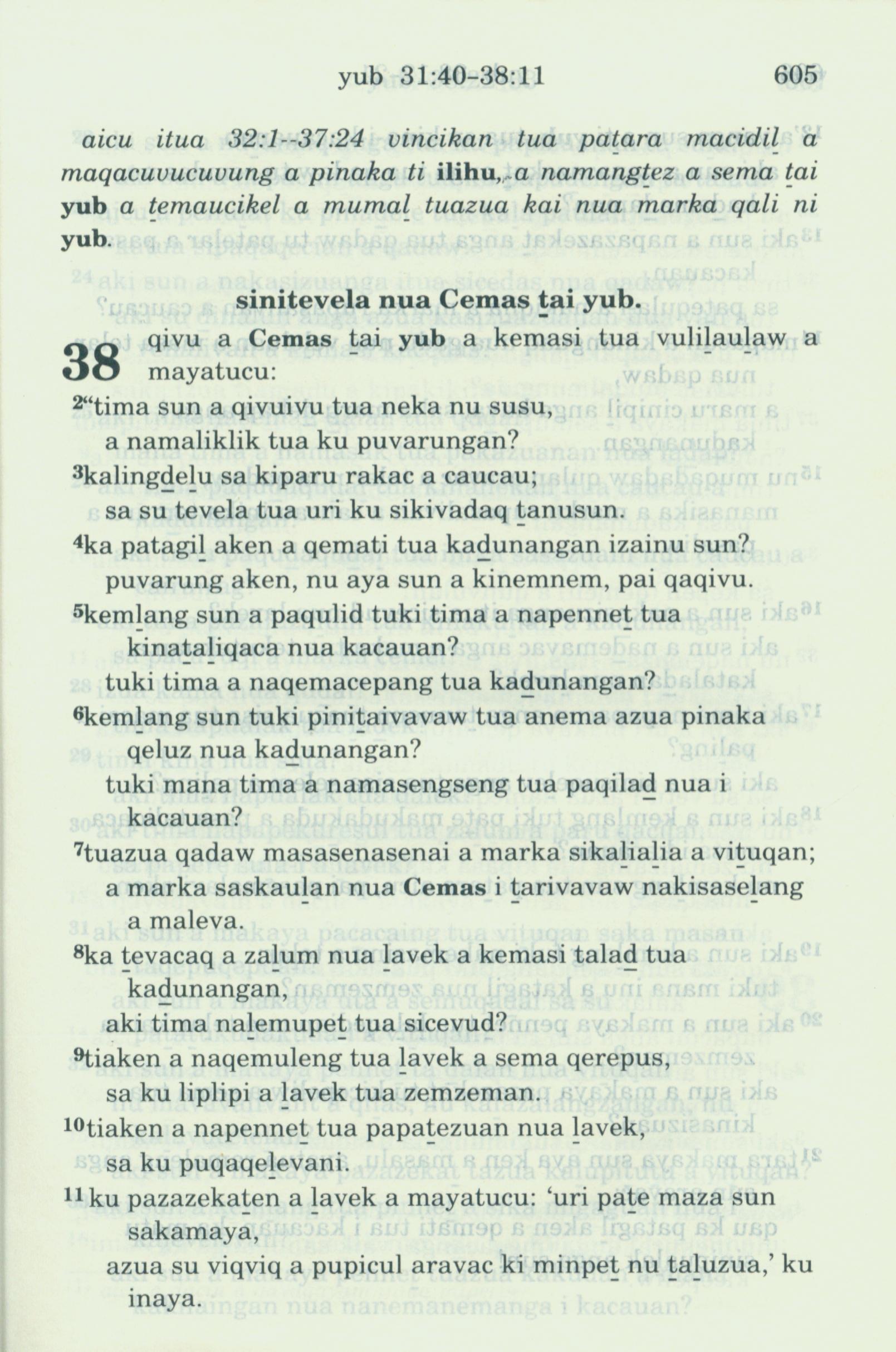 1993年新舊約全書 約伯記 32 章 1 節到 38 章 11 節