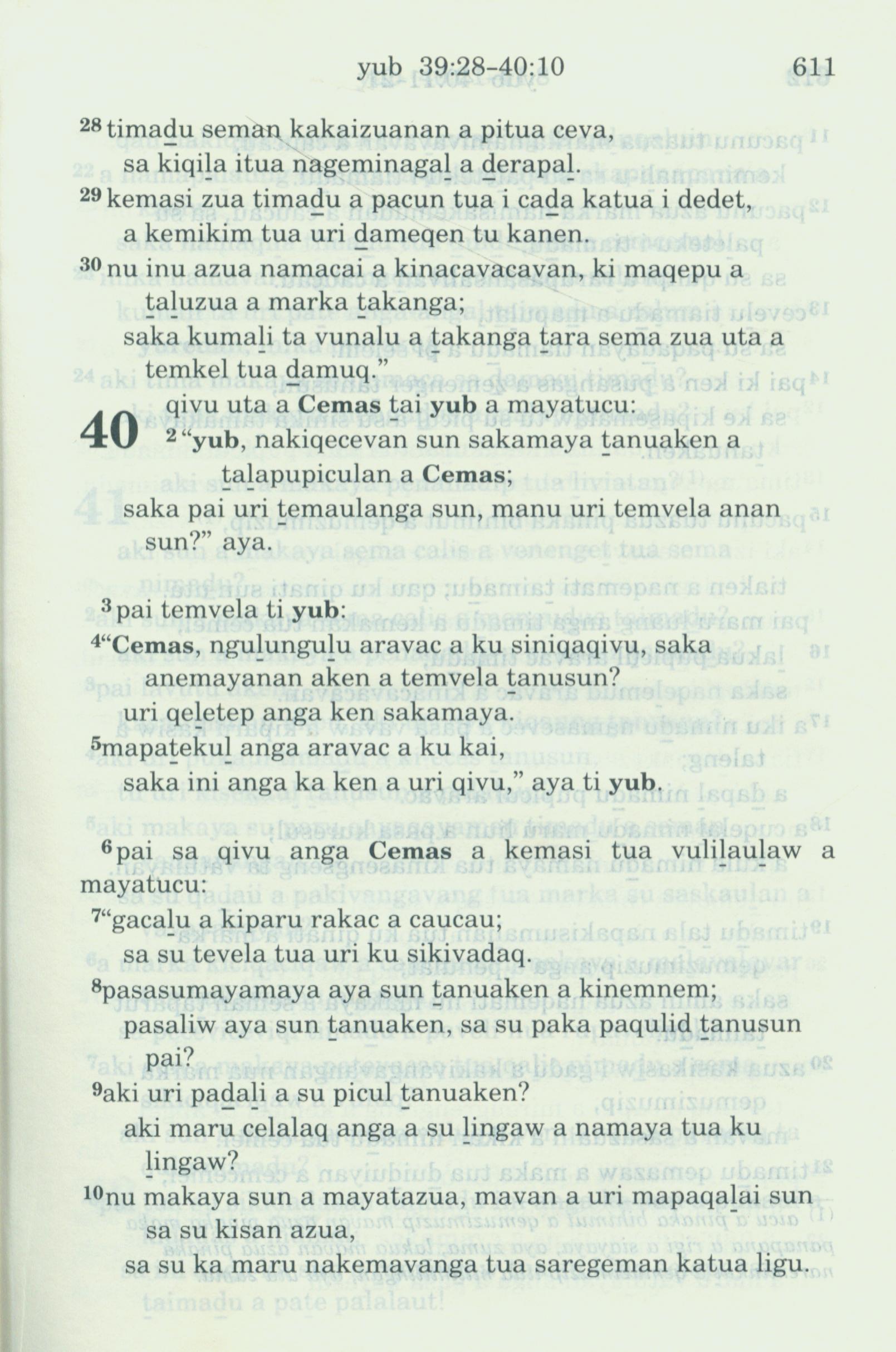1993年新舊約全書 約伯記 39 章 28 節到 40 章 10 節