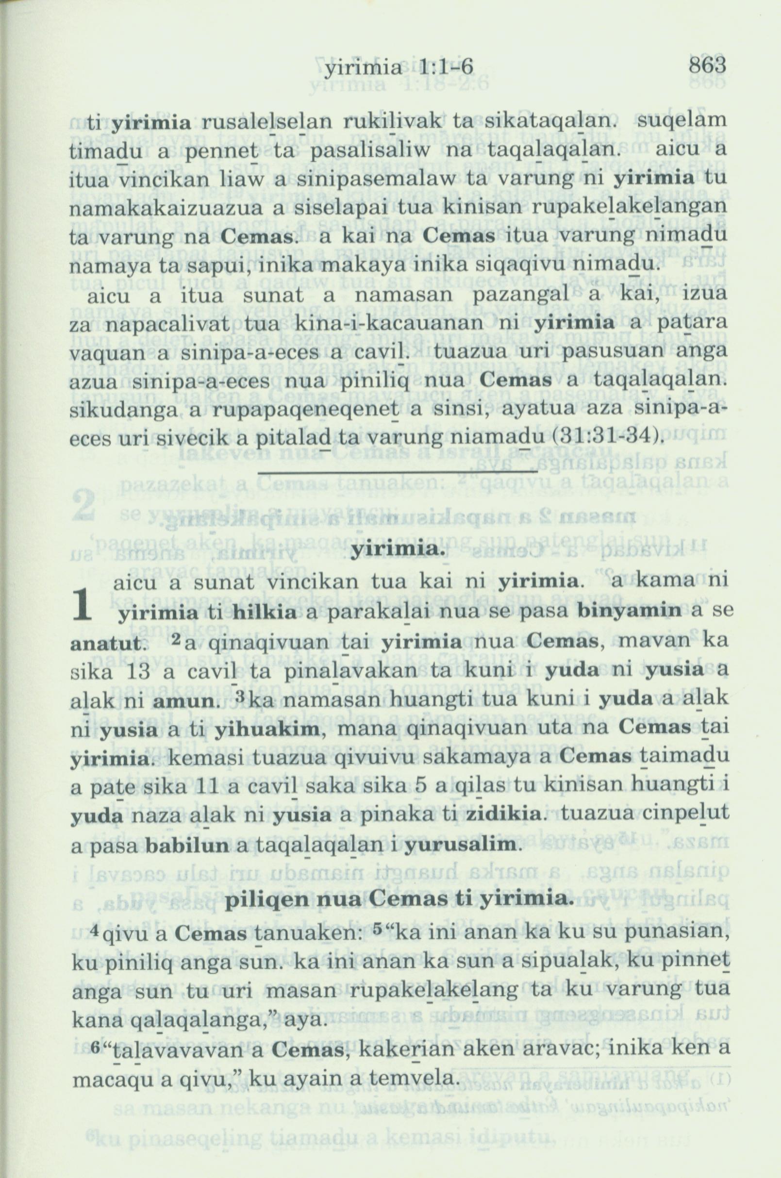 1993年新舊約全書 耶利米書 1 章 1 節到 1 章 6 節