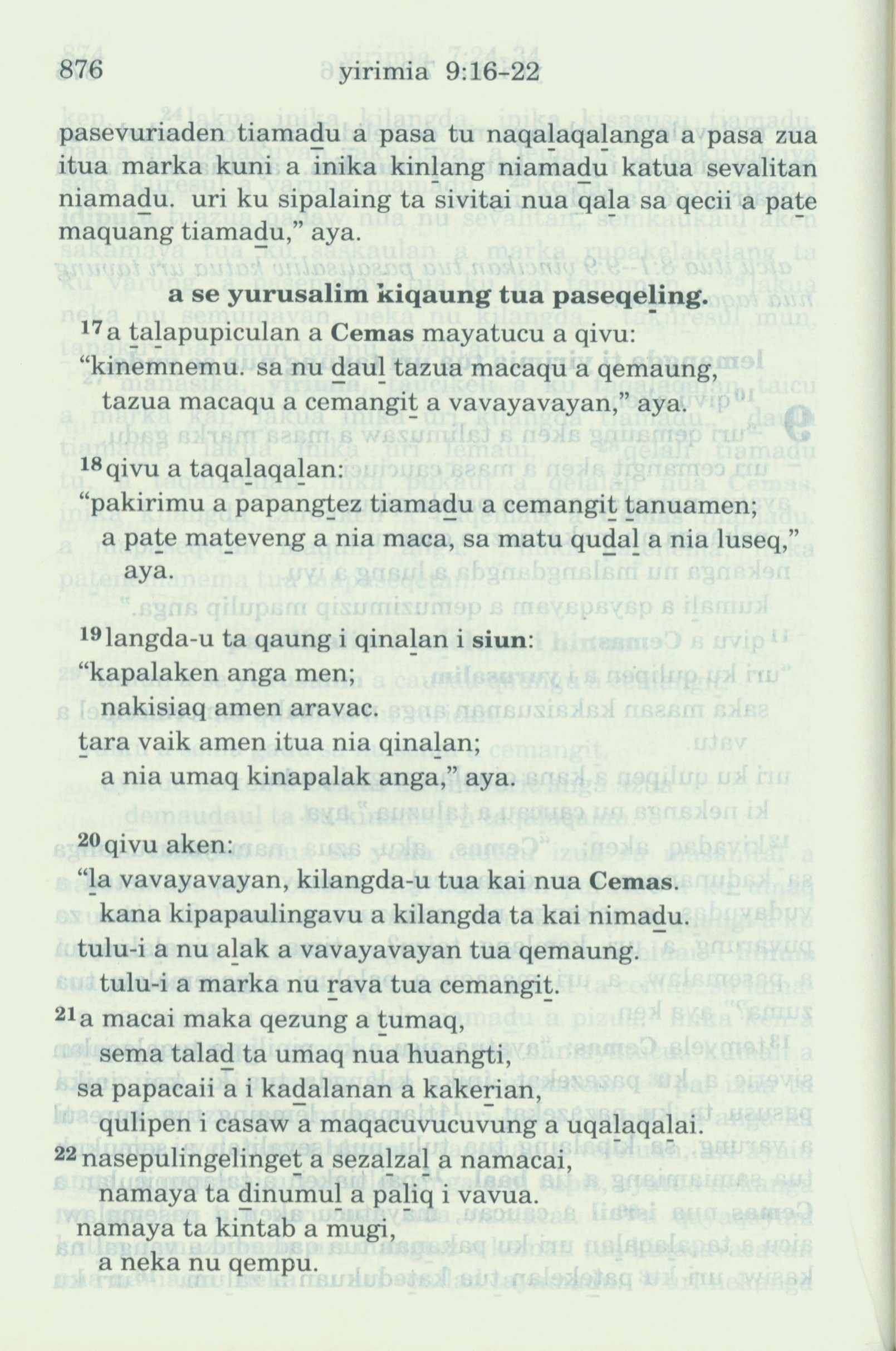 1993年新舊約全書 耶利米書 9 章 17 節到 9 章 22 節