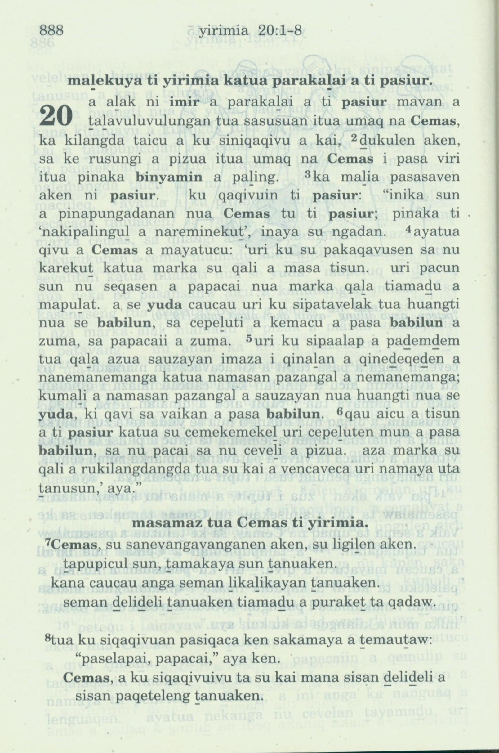 1993年新舊約全書 耶利米書 20 章 1 節到 20 章 8 節