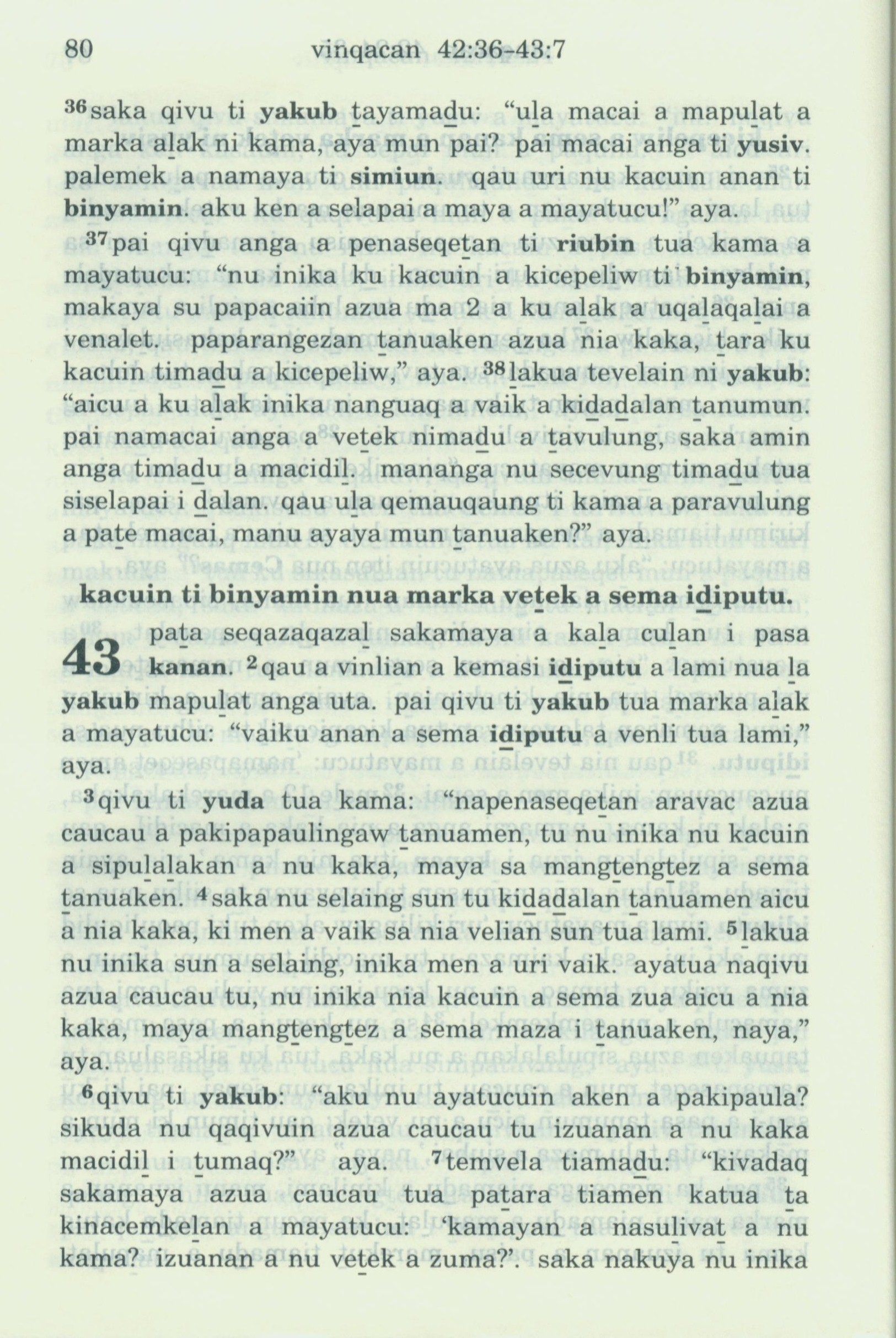 1993年新舊約全書 創世記 42 章 36 節到 43 章 7 節