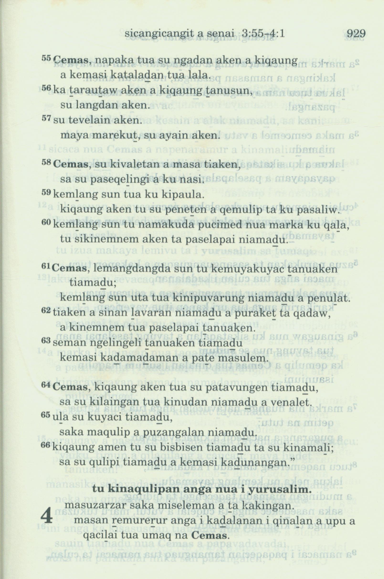 1993年新舊約全書 耶利米哀歌 3 章 55 節到 4 章 1 節