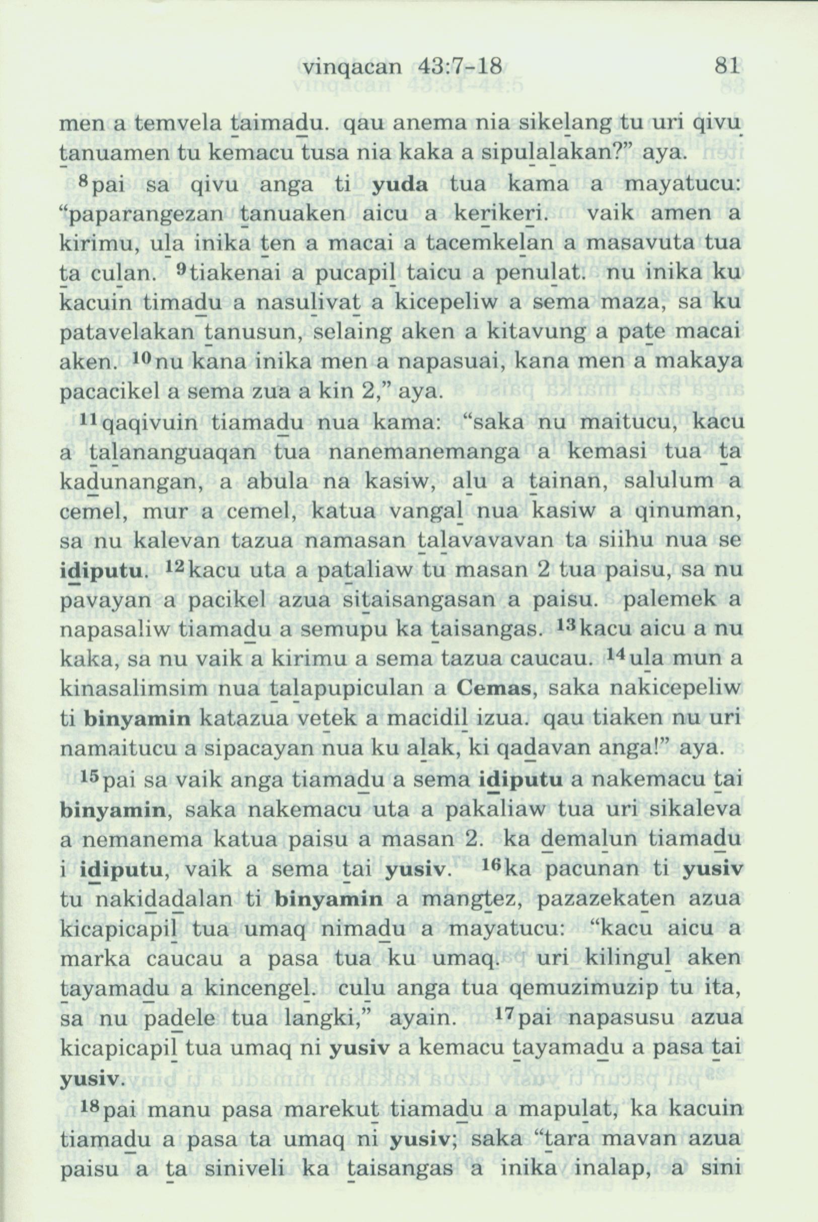 1993年新舊約全書 創世記 43 章 8 節到 43 章 18 節
