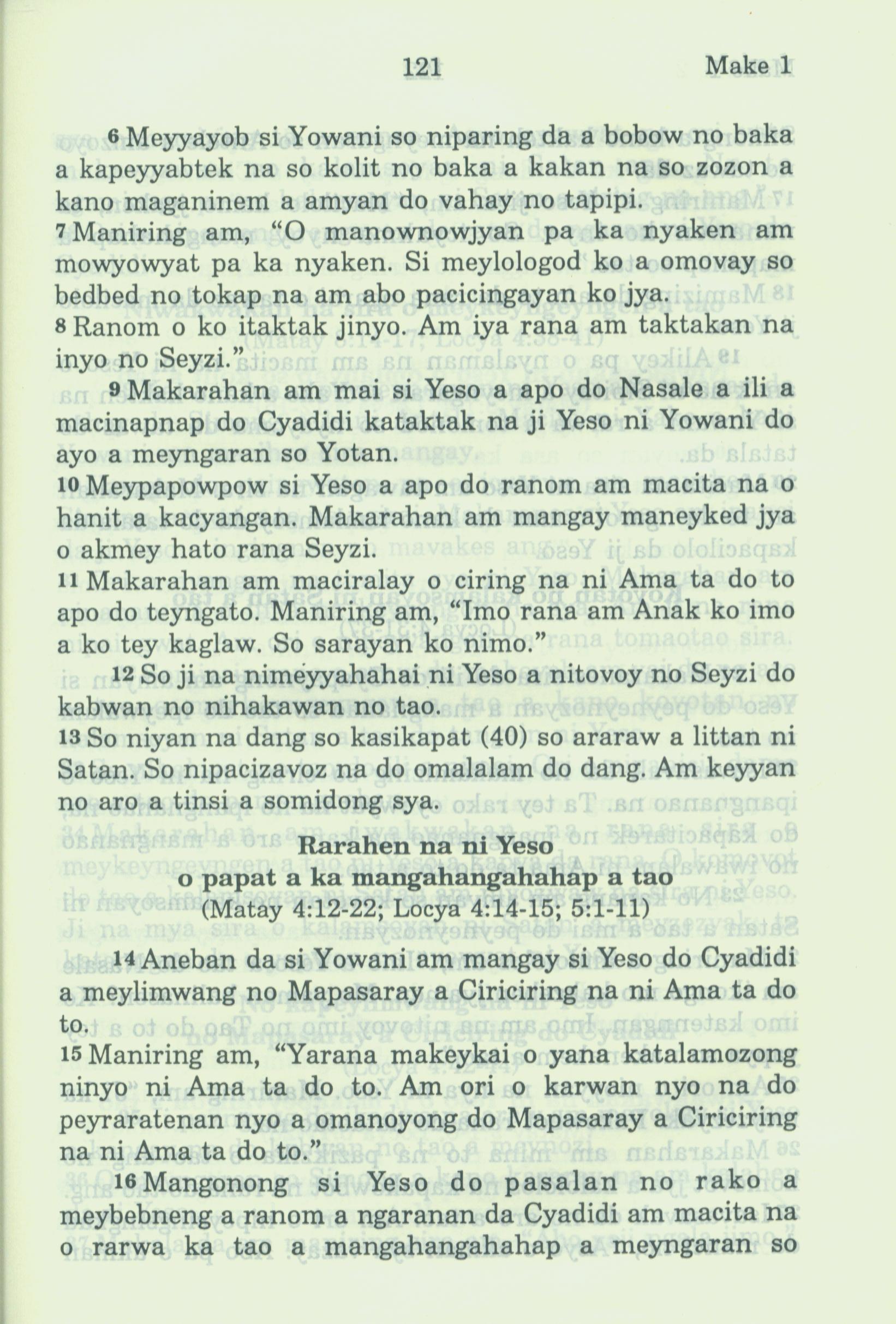 1994年新約全書 馬可福音 1 章 6 節到 1 章 16 節