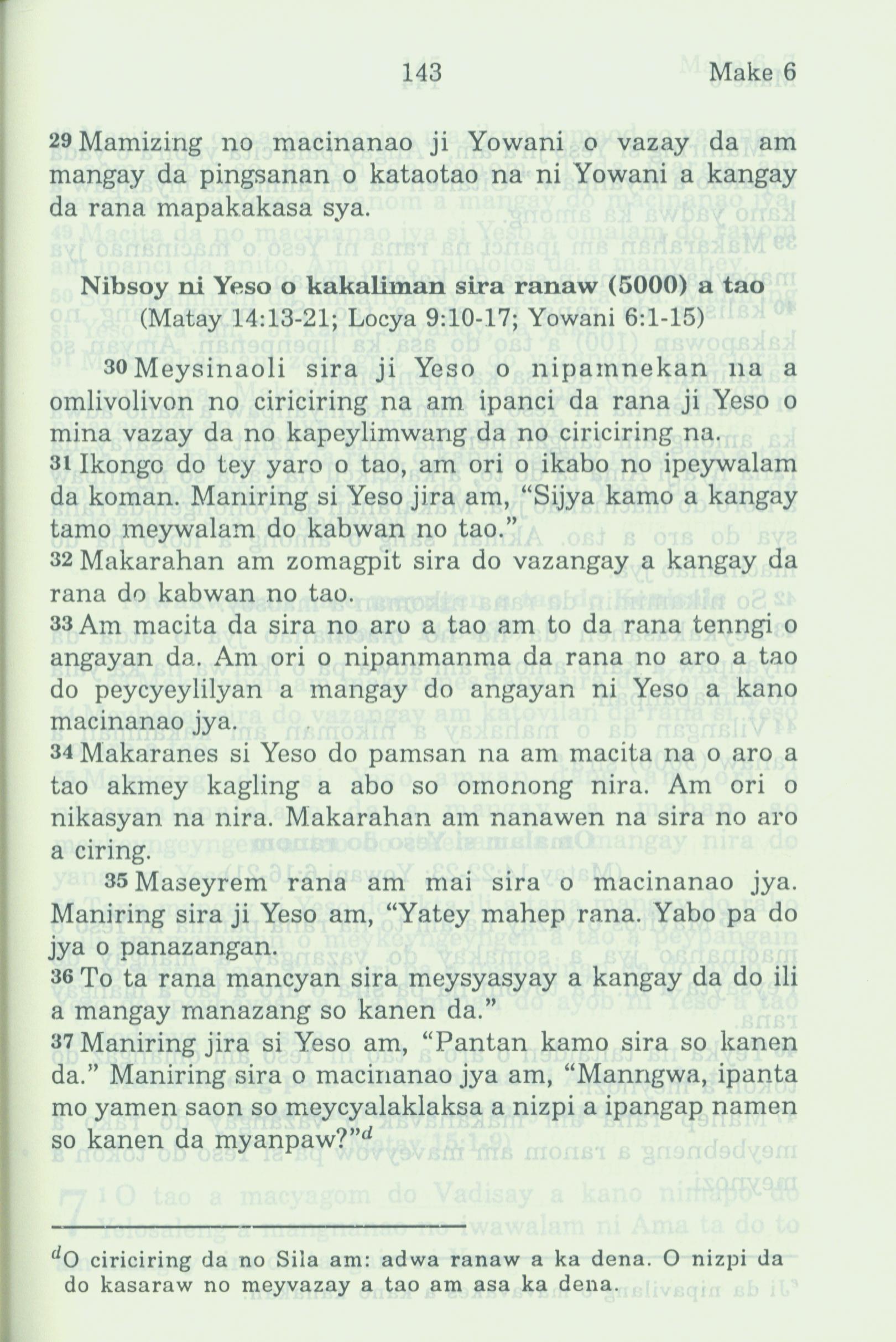 1994年新約全書 馬可福音 6 章 29 節到 6 章 37 節