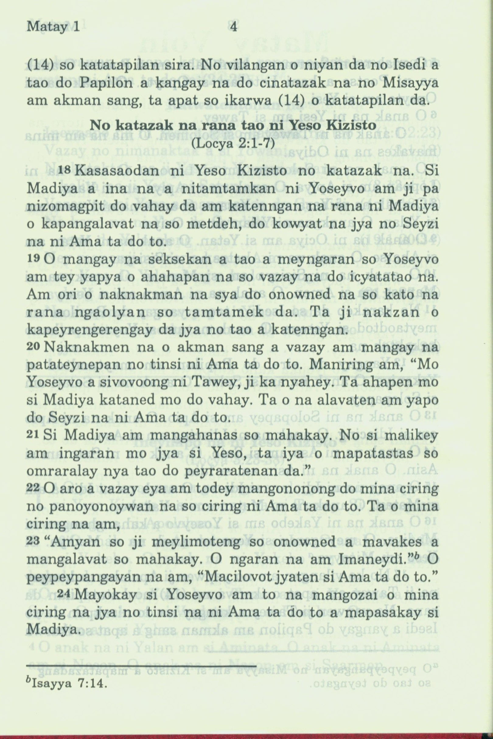 1994年新約全書 馬太福音 1 章 18 節到 1 章 24 節