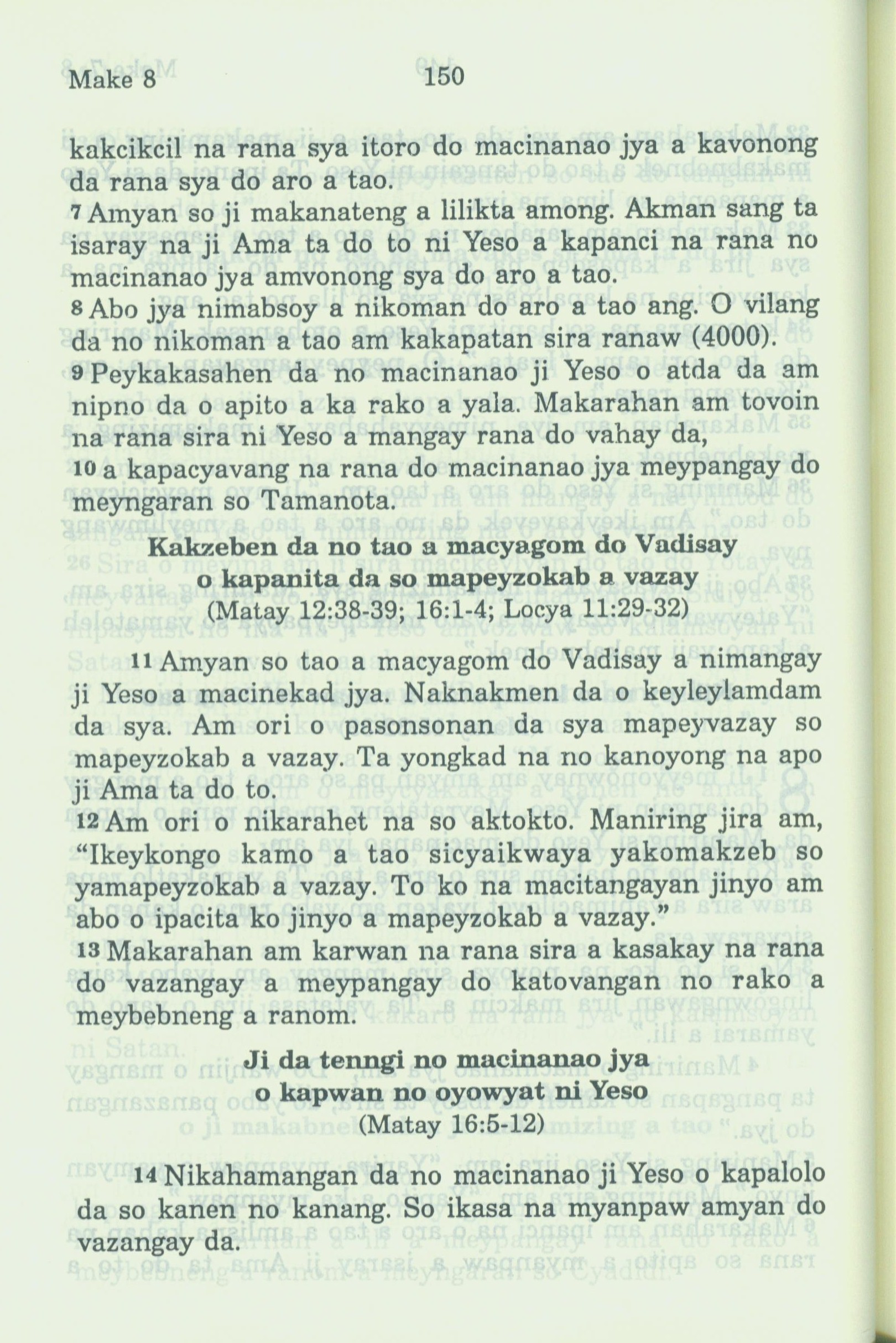 1994年新約全書 馬可福音 8 章 7 節到 8 章 14 節