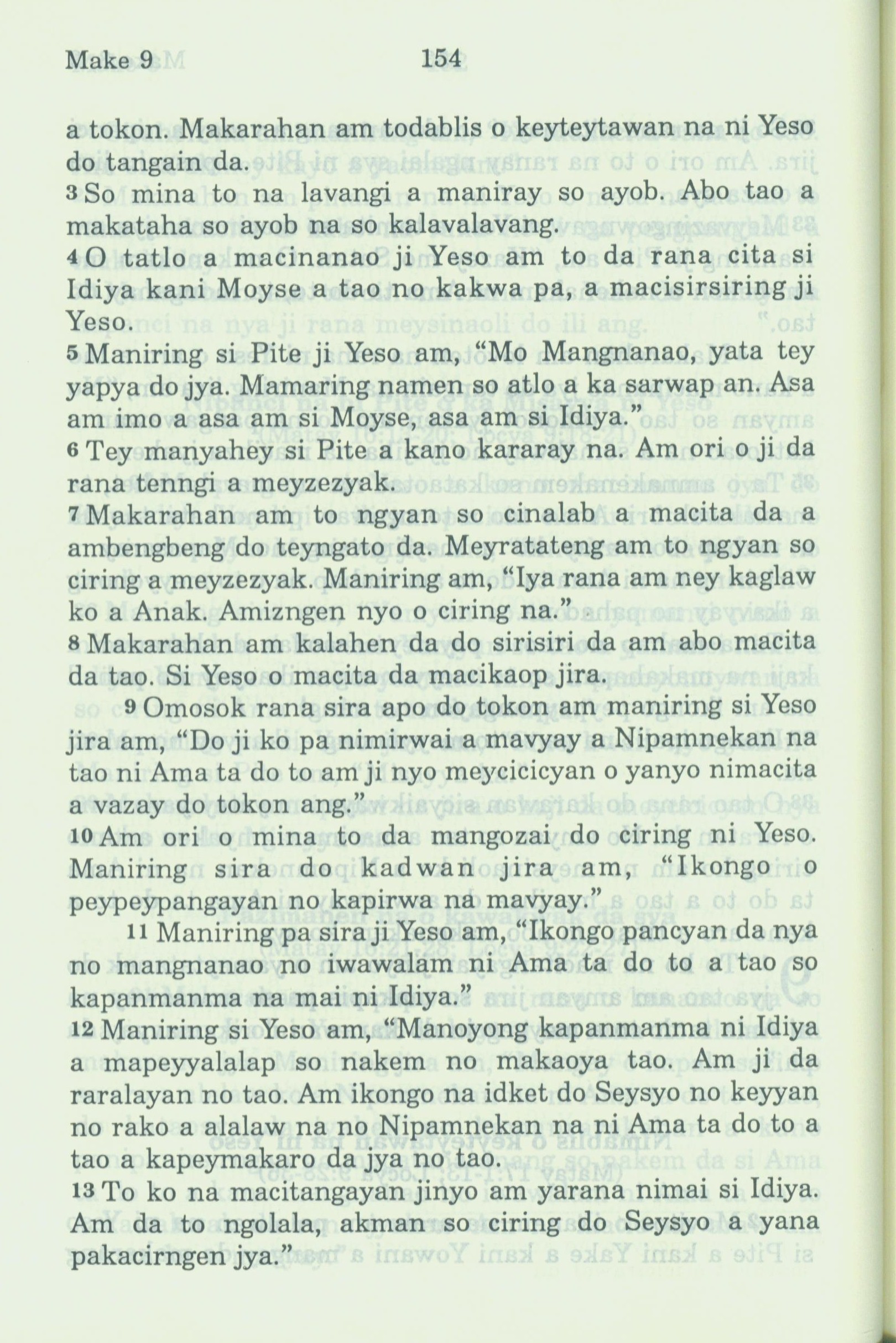 1994年新約全書 馬可福音 9 章 3 節到 9 章 13 節