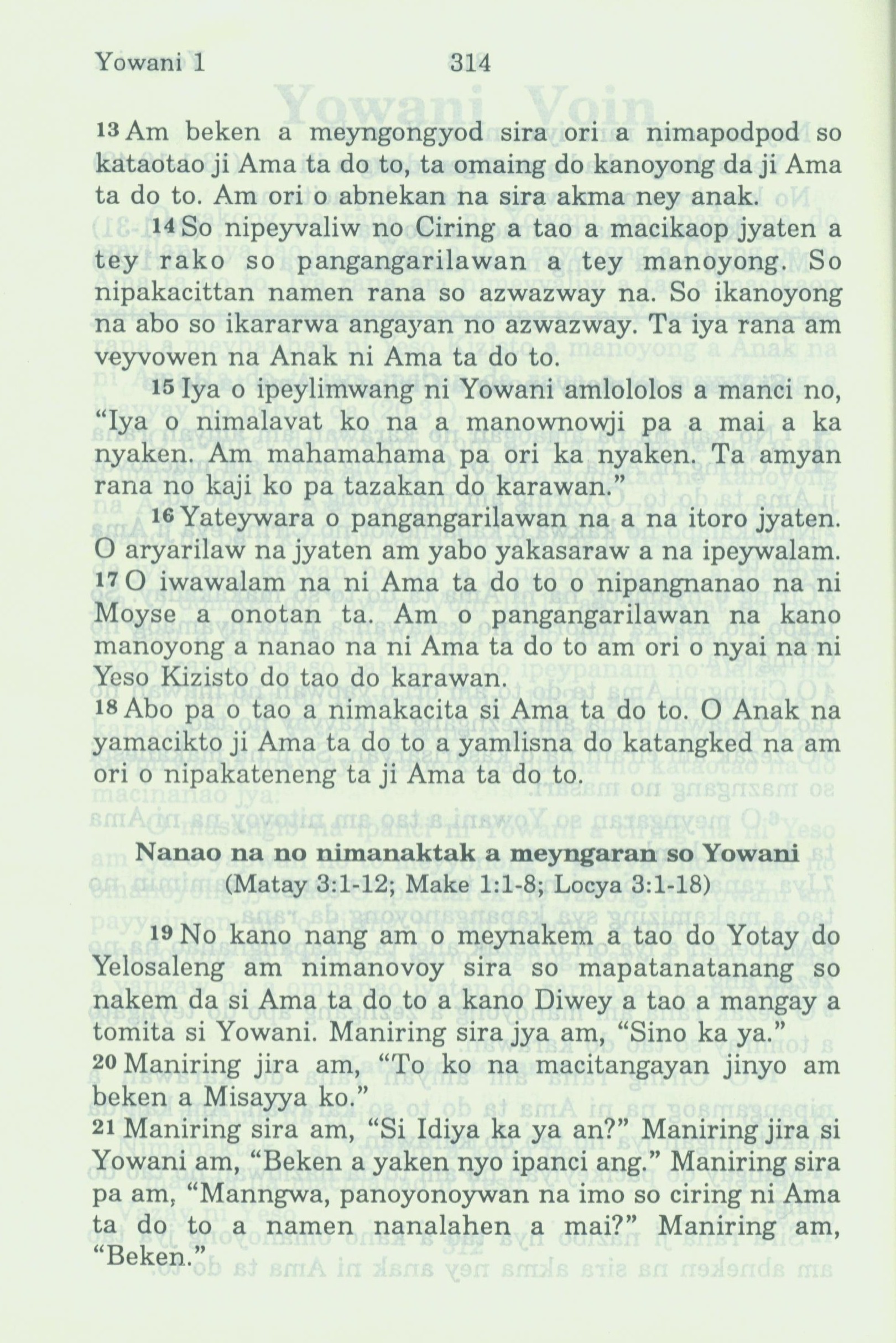 1994年新約全書 約翰福音 1 章 13 節到 1 章 21 節
