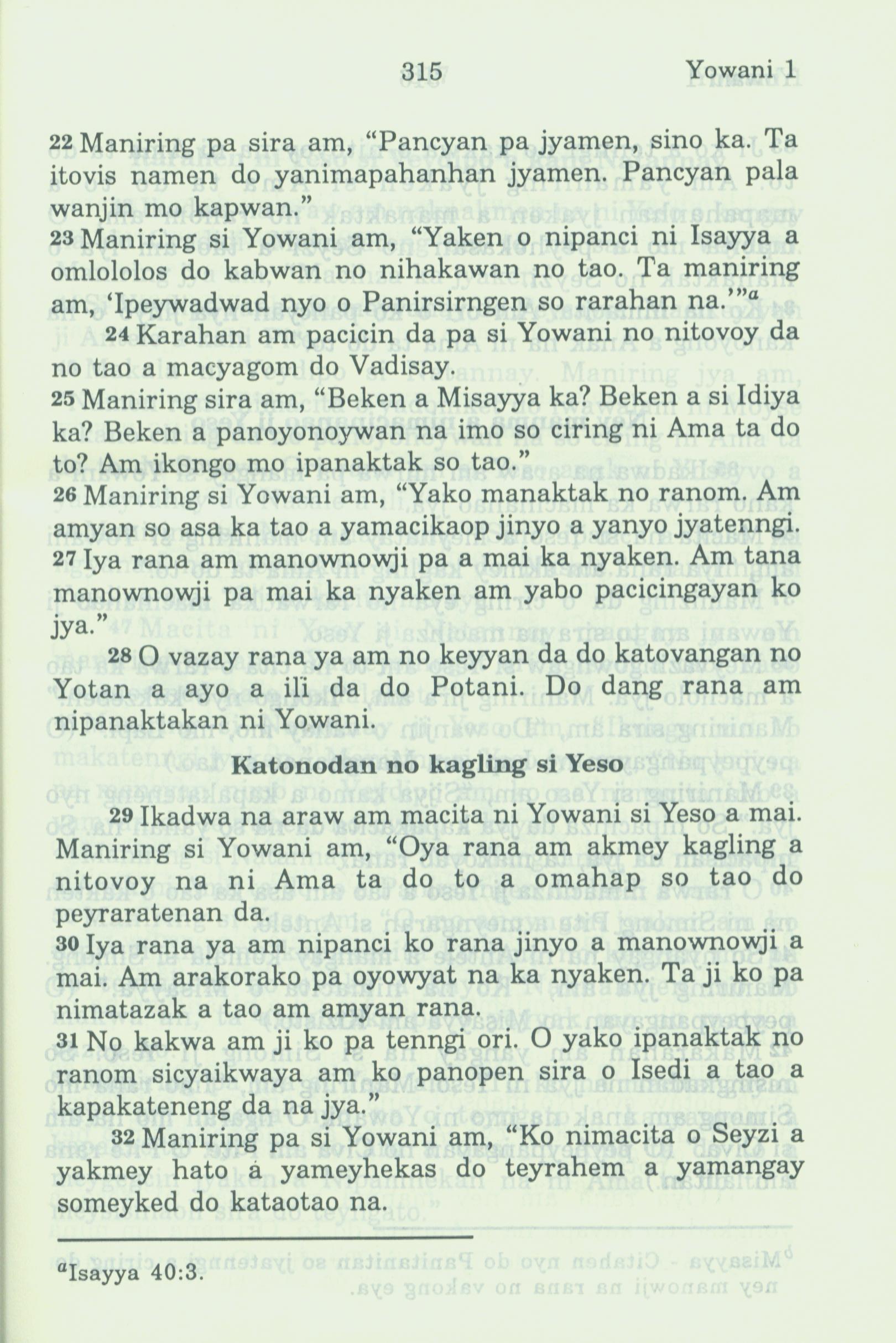 1994年新約全書 約翰福音 1 章 22 節到 1 章 32 節