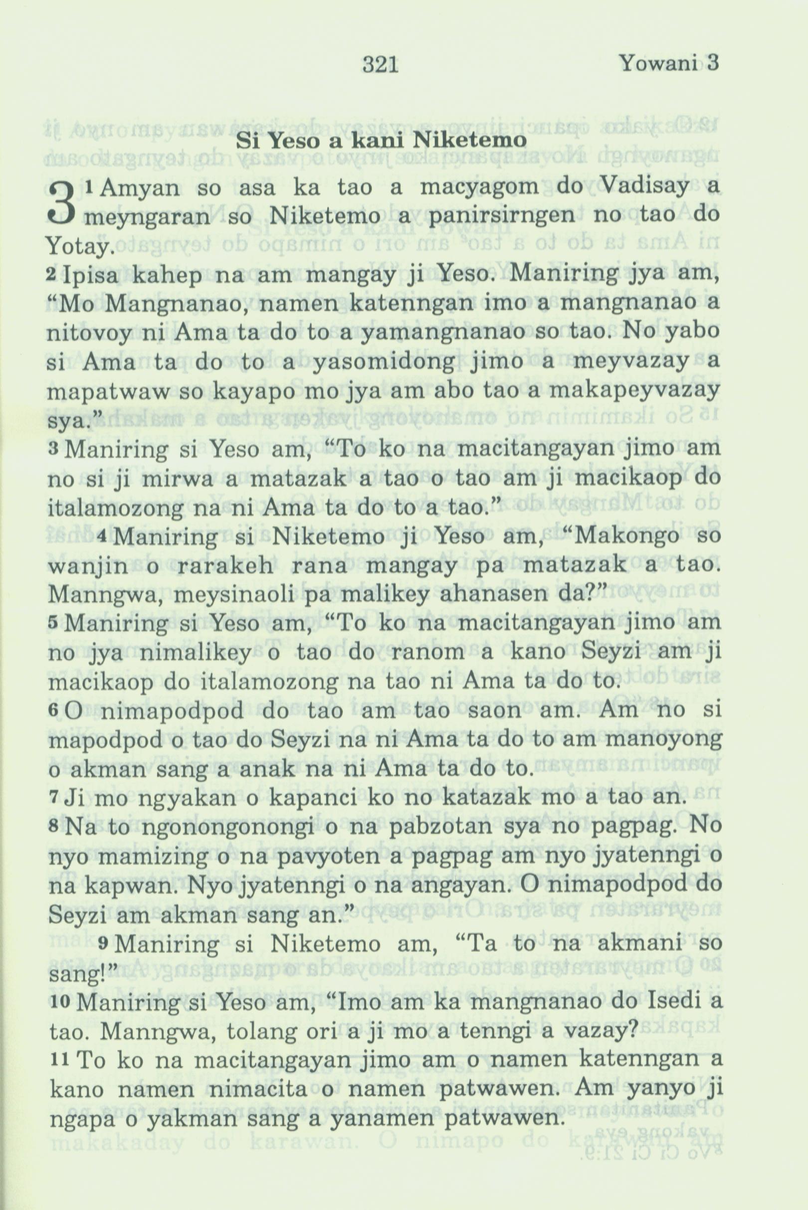 1994年新約全書 約翰福音 3 章 1 節到 3 章 11 節