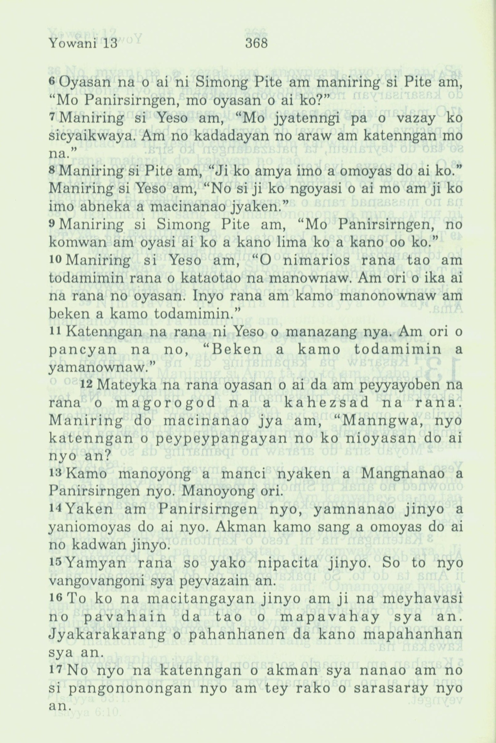 1994年新約全書 約翰福音 13 章 6 節到 13 章 17 節