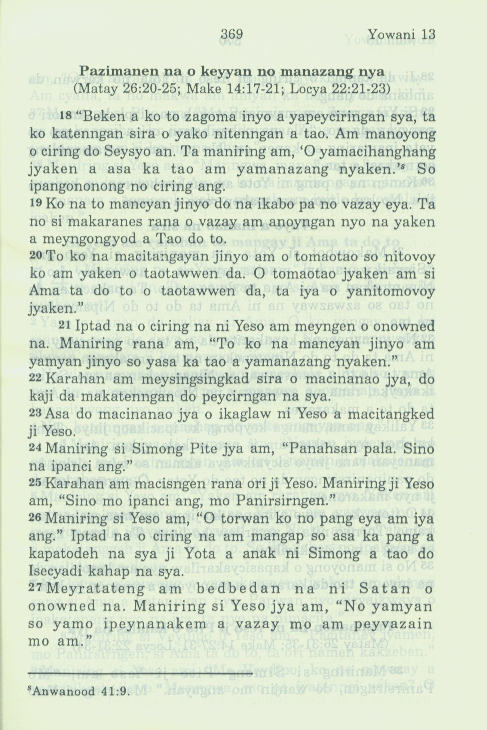 1994年新約全書 約翰福音 13 章 18 節到 13 章 27 節