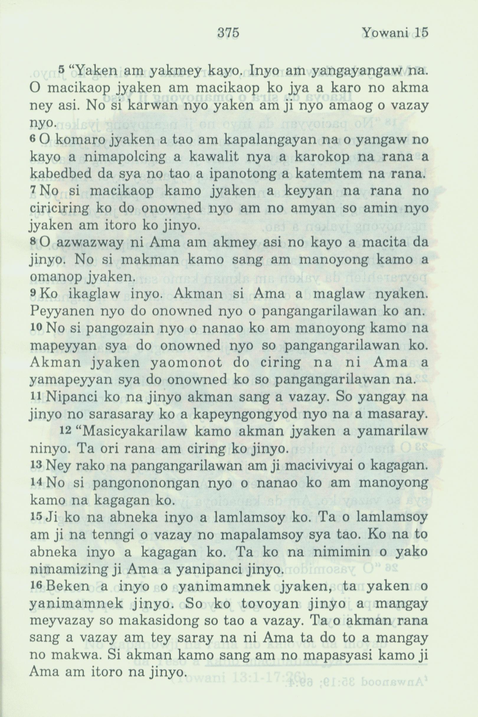 1994年新約全書 約翰福音 15 章 5 節到 15 章 16 節