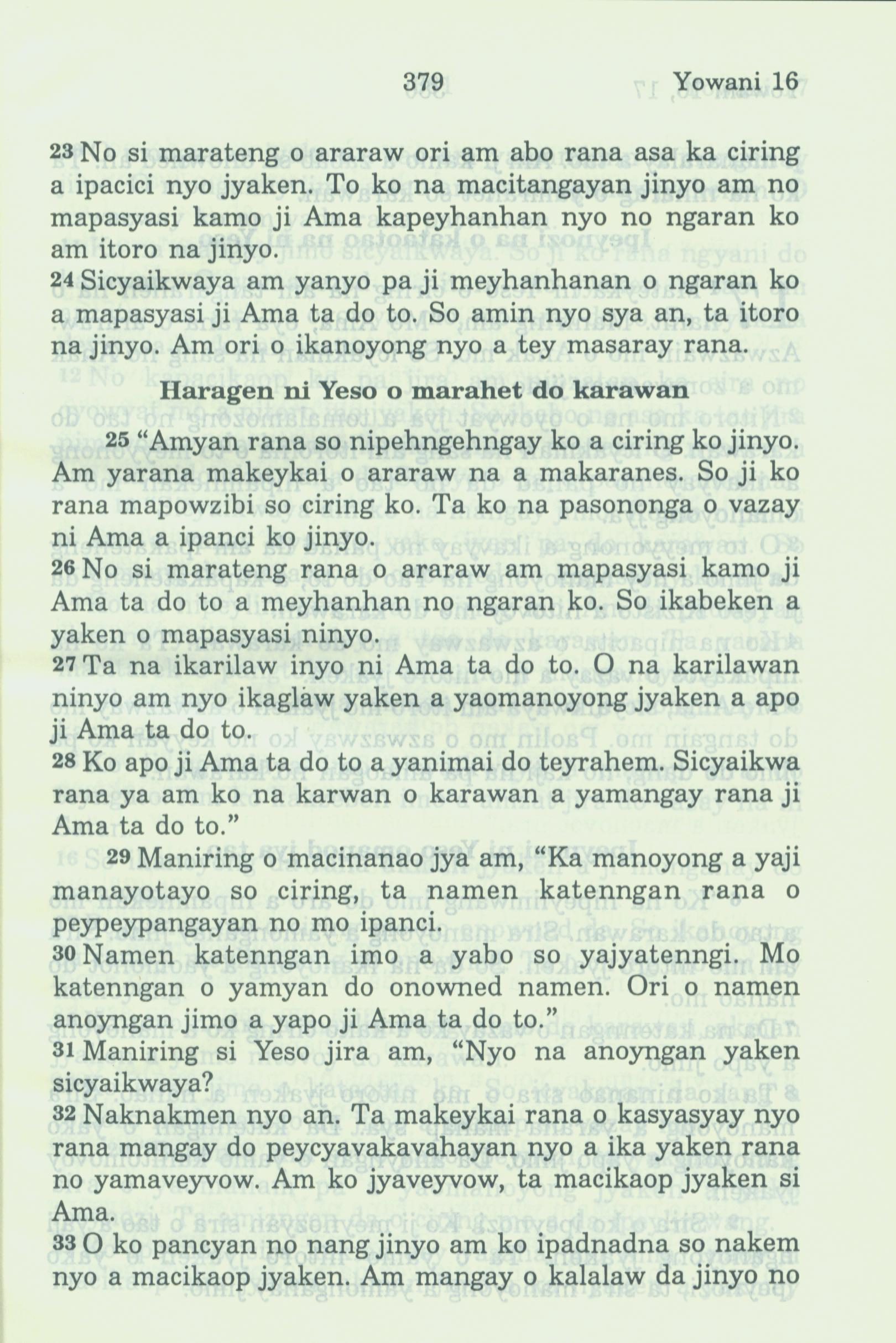 1994年新約全書 約翰福音 16 章 23 節到 16 章 33 節