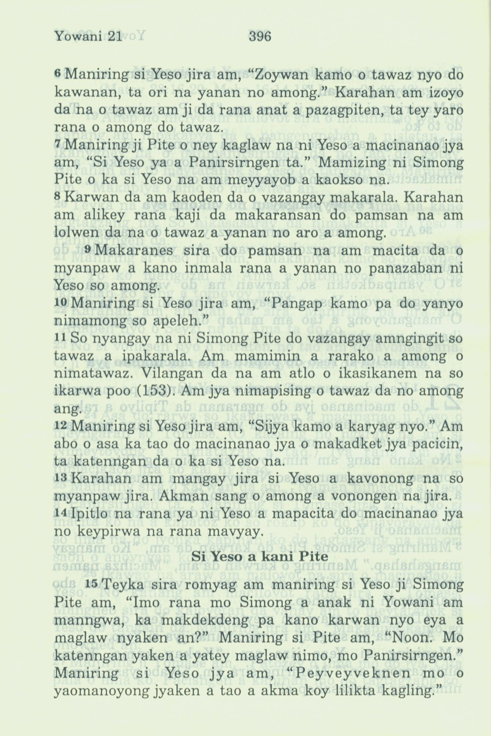 1994年新約全書 約翰福音 21 章 6 節到 21 章 15 節
