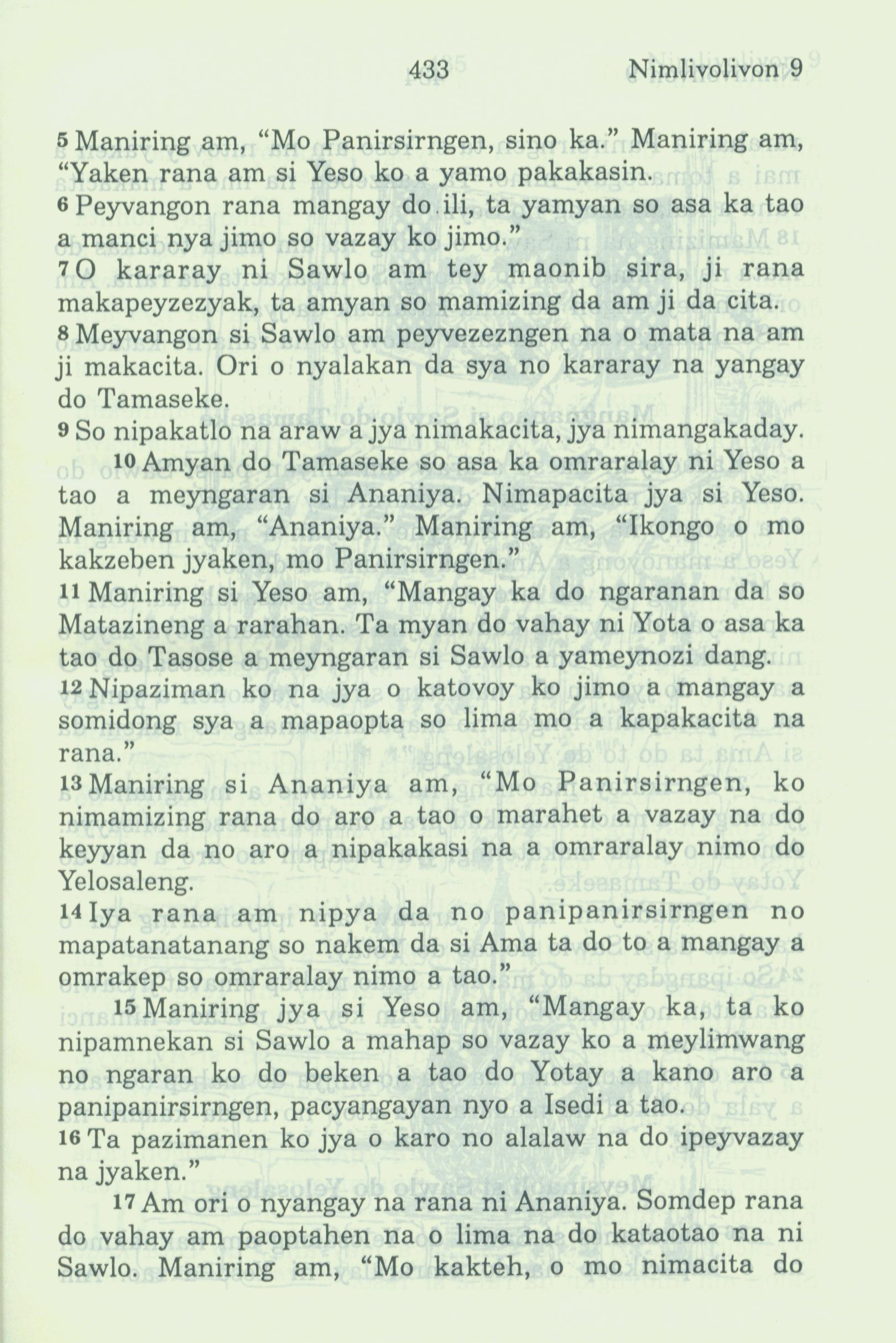 1994年新約全書 使徒行傳 9 章 5 節到 9 章 17 節