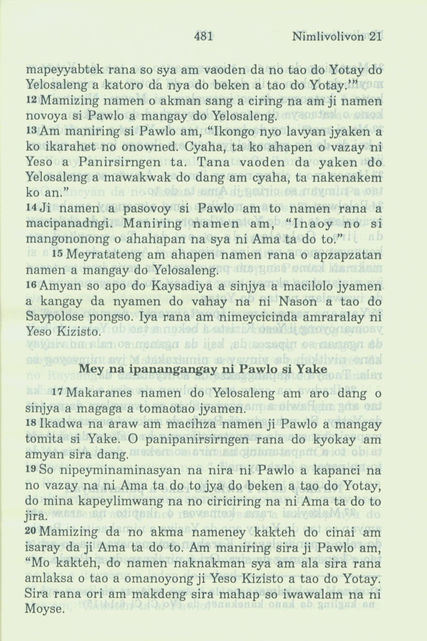 1994年新約全書 使徒行傳 21 章 12 節到 21 章 20 節