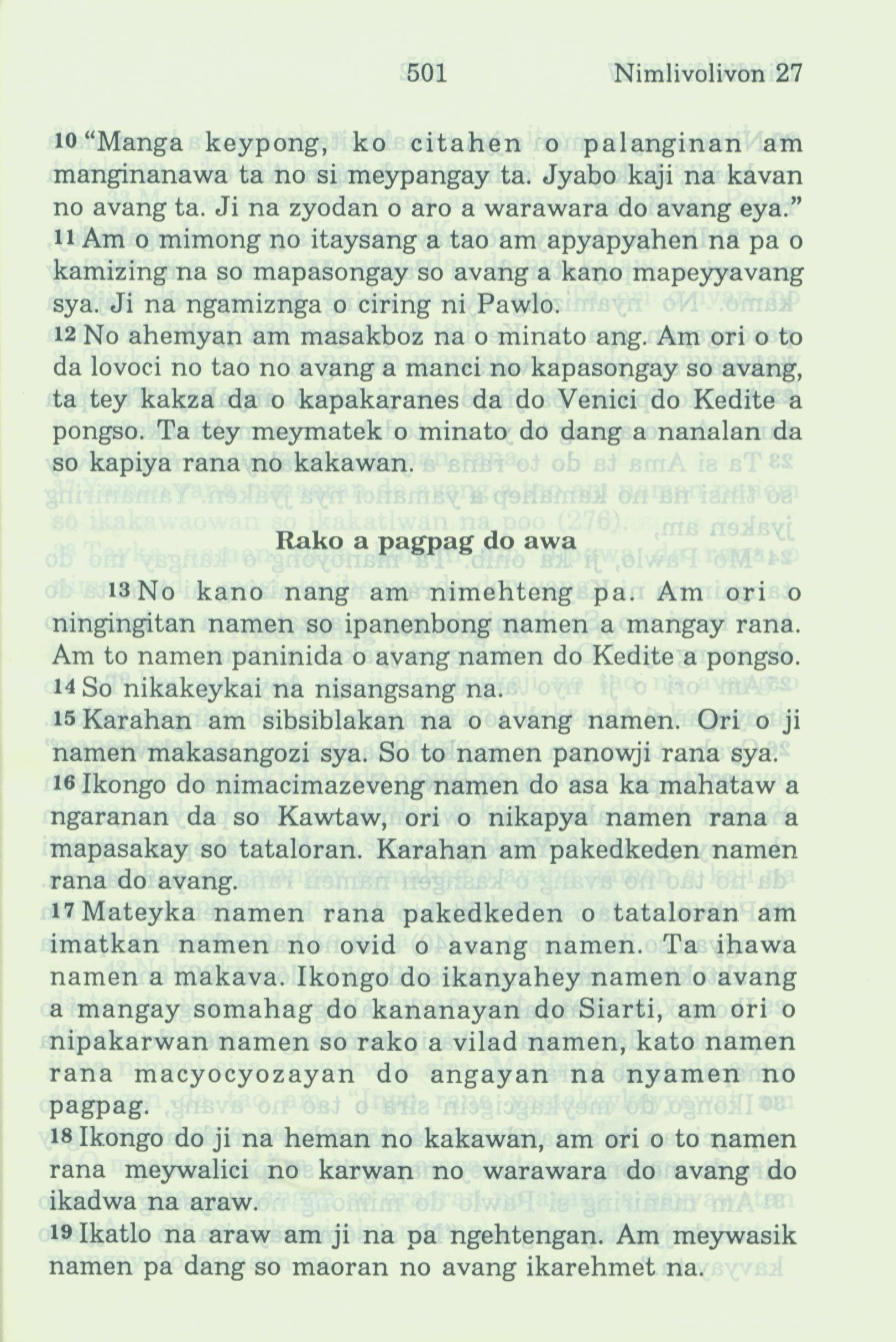 1994年新約全書 使徒行傳 27 章 10 節到 27 章 19 節