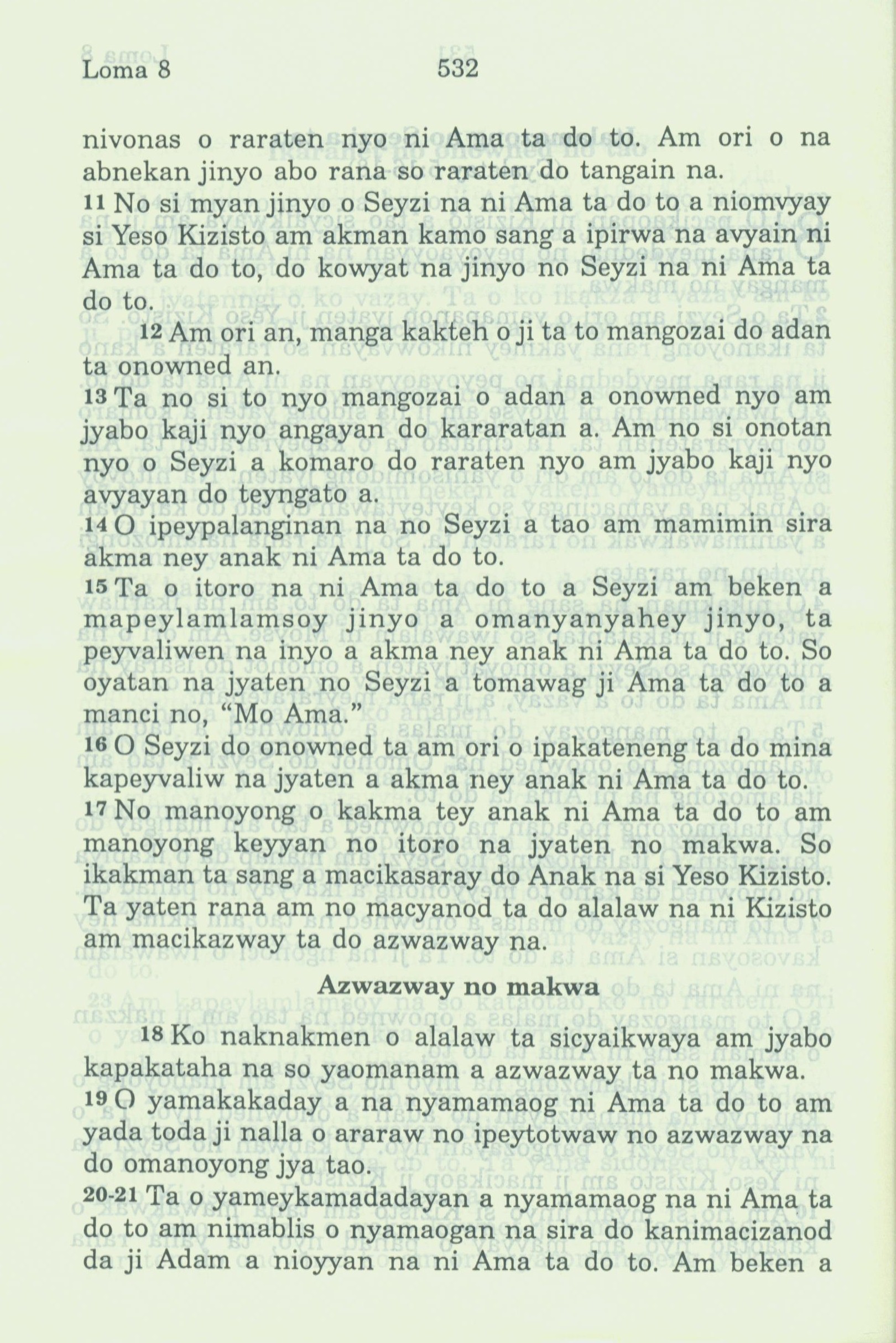 1994年新約全書 羅馬書 8 章 11 節到 8 章 21 節