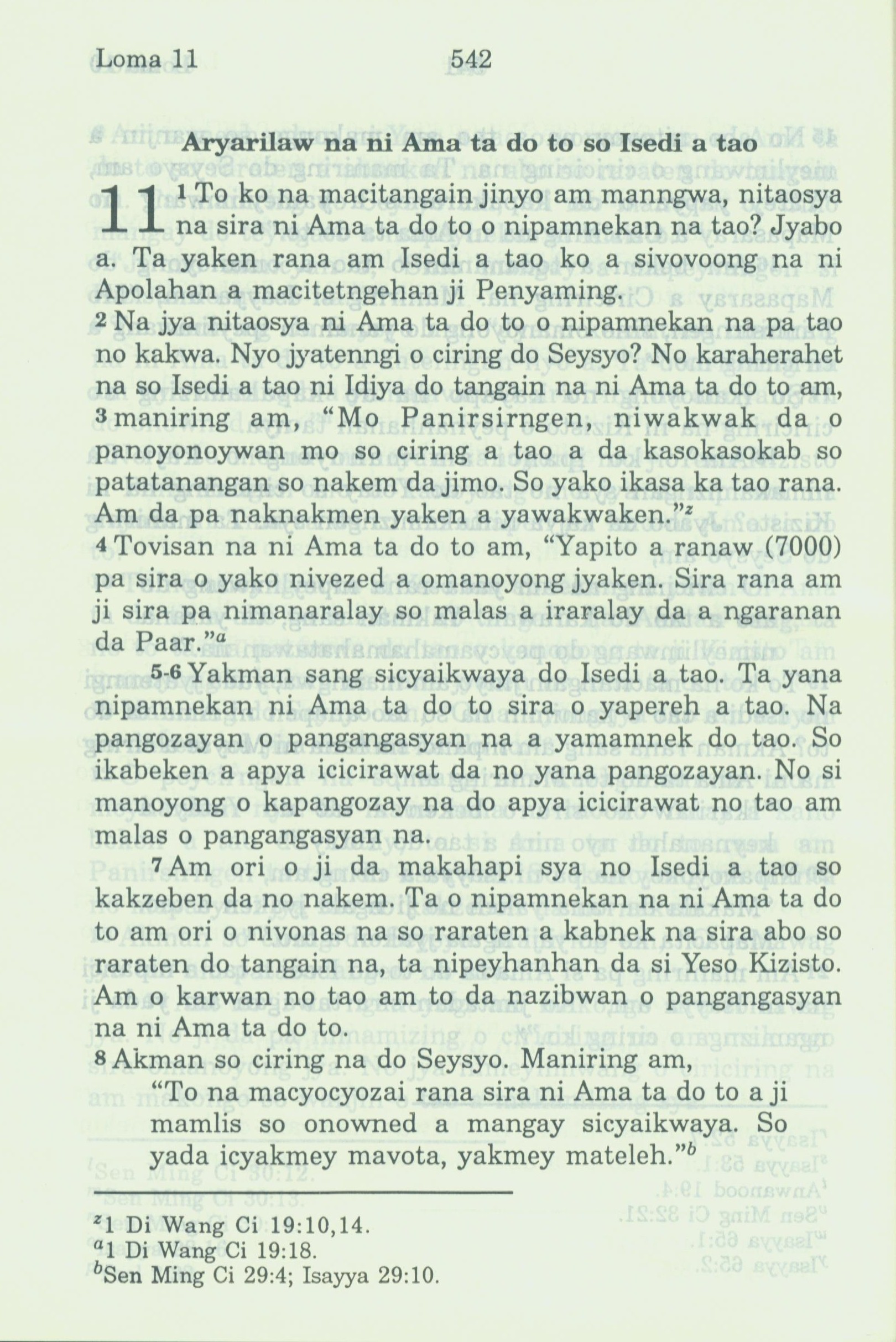 1994年新約全書 羅馬書 11 章 1 節到 11 章 8 節