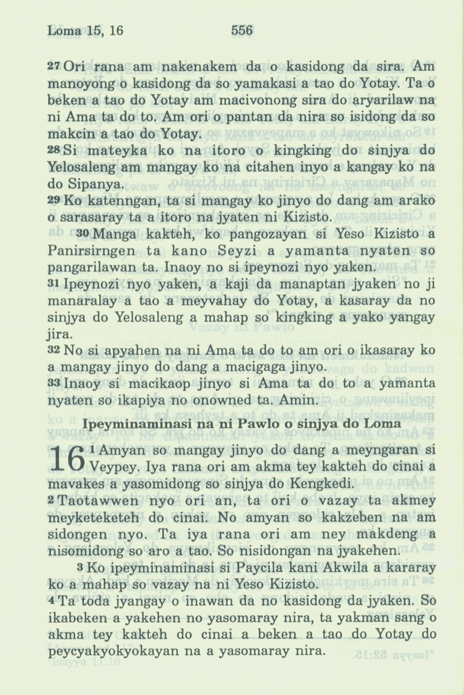 1994年新約全書 羅馬書 15 章 27 節到 16 章 4 節