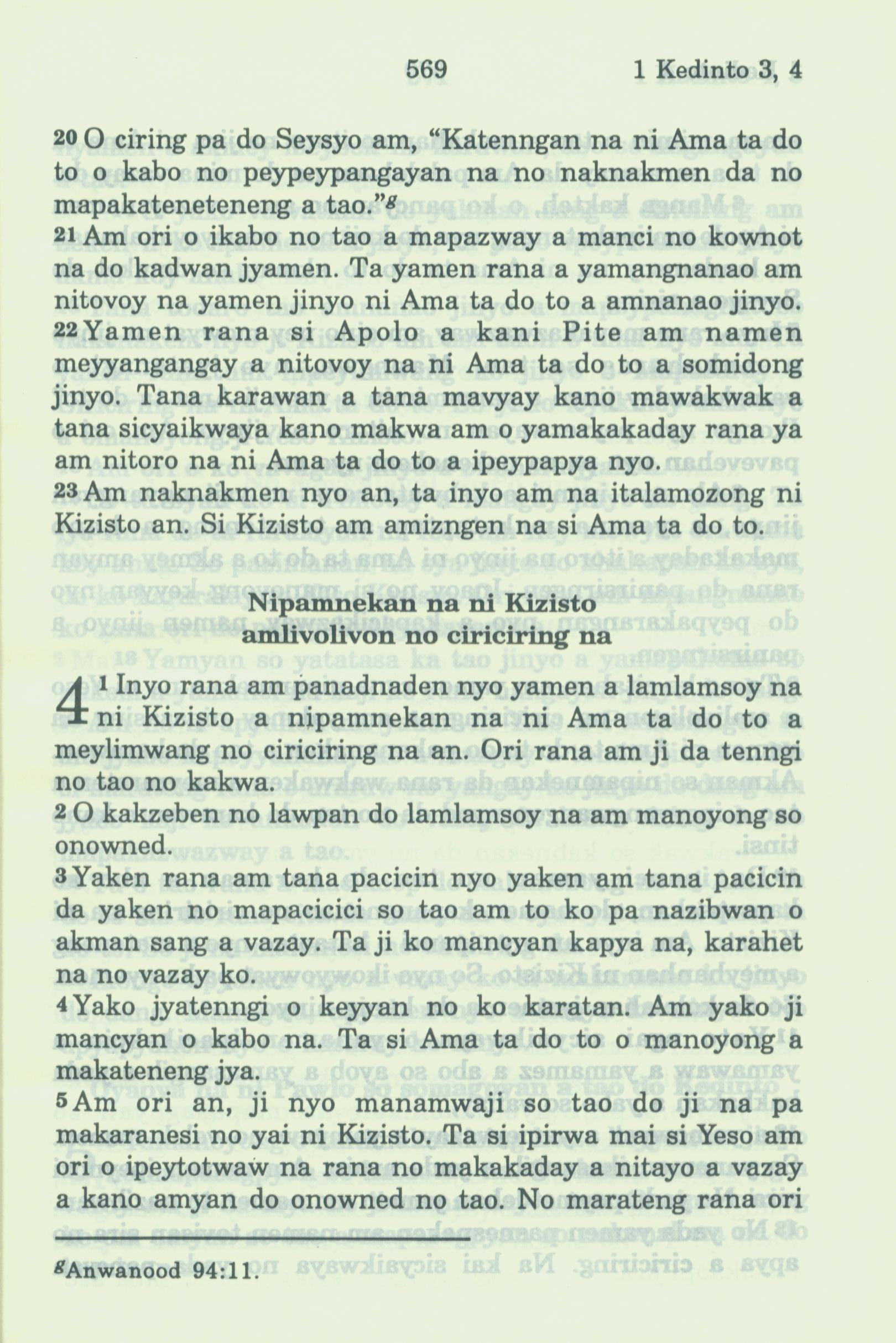 1994年新約全書 哥林多前書 3 章 20 節到 4 章 5 節