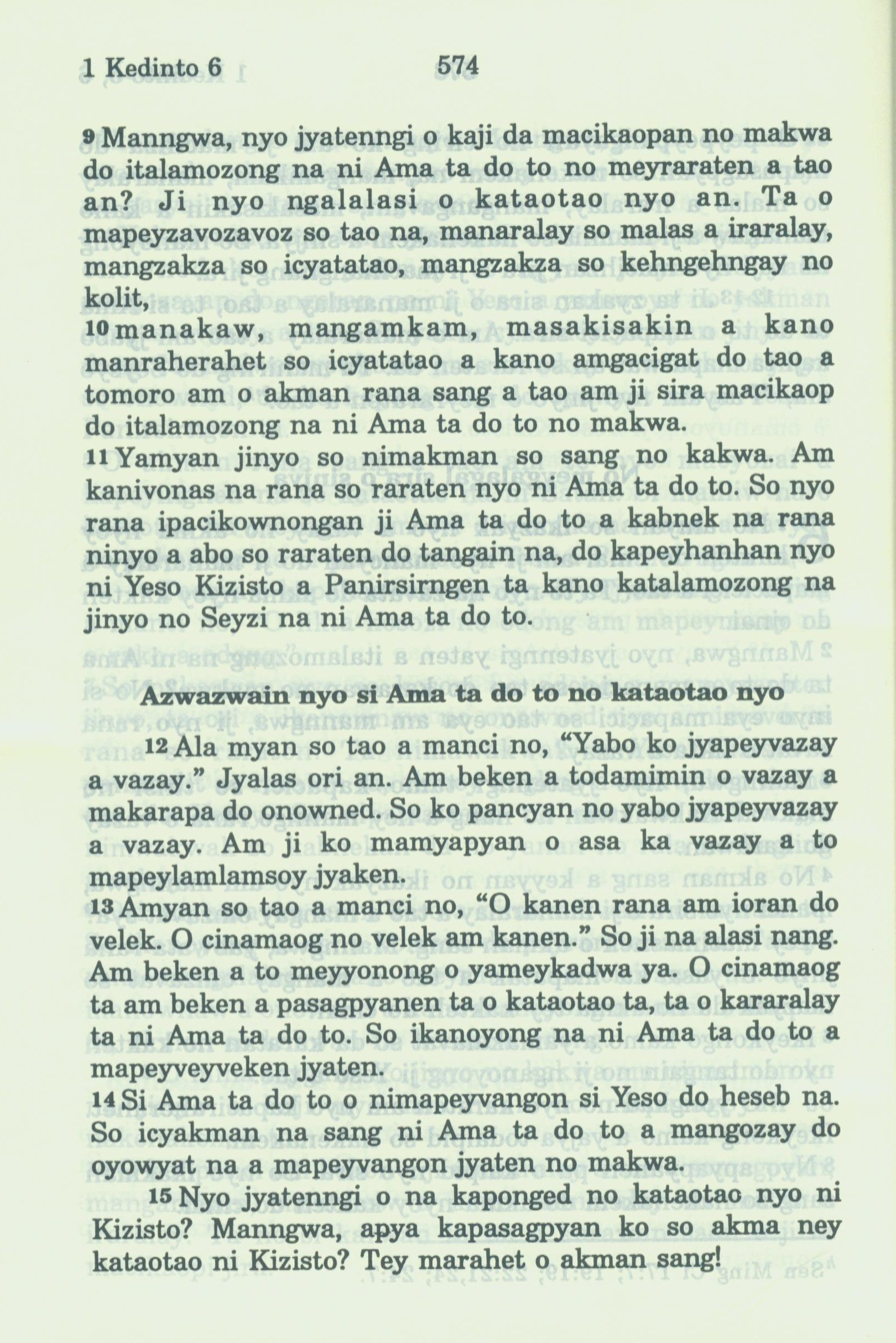 1994年新約全書 哥林多前書 6 章 9 節到 6 章 15 節