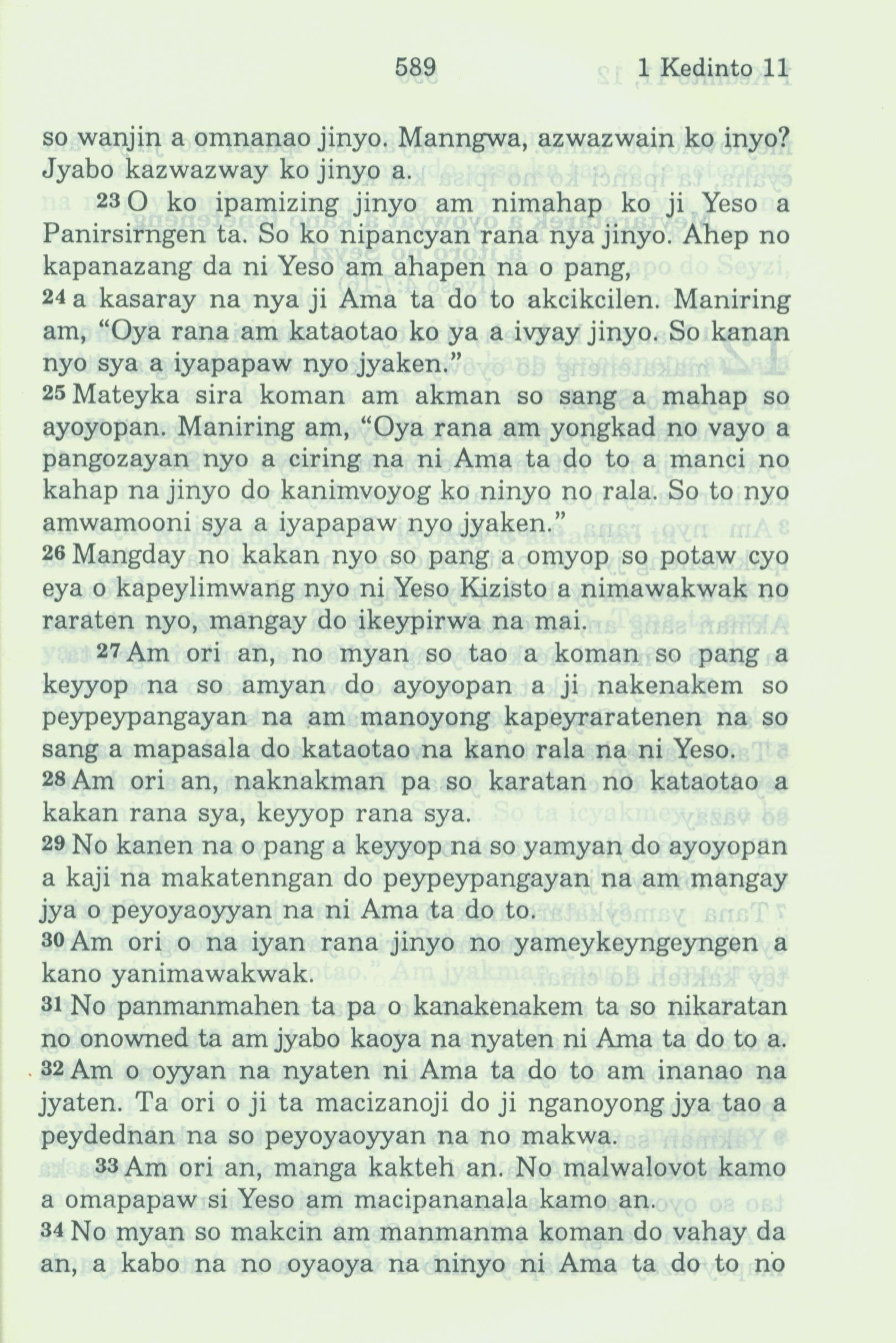 1994年新約全書 哥林多前書 11 章 23 節到 11 章 34 節