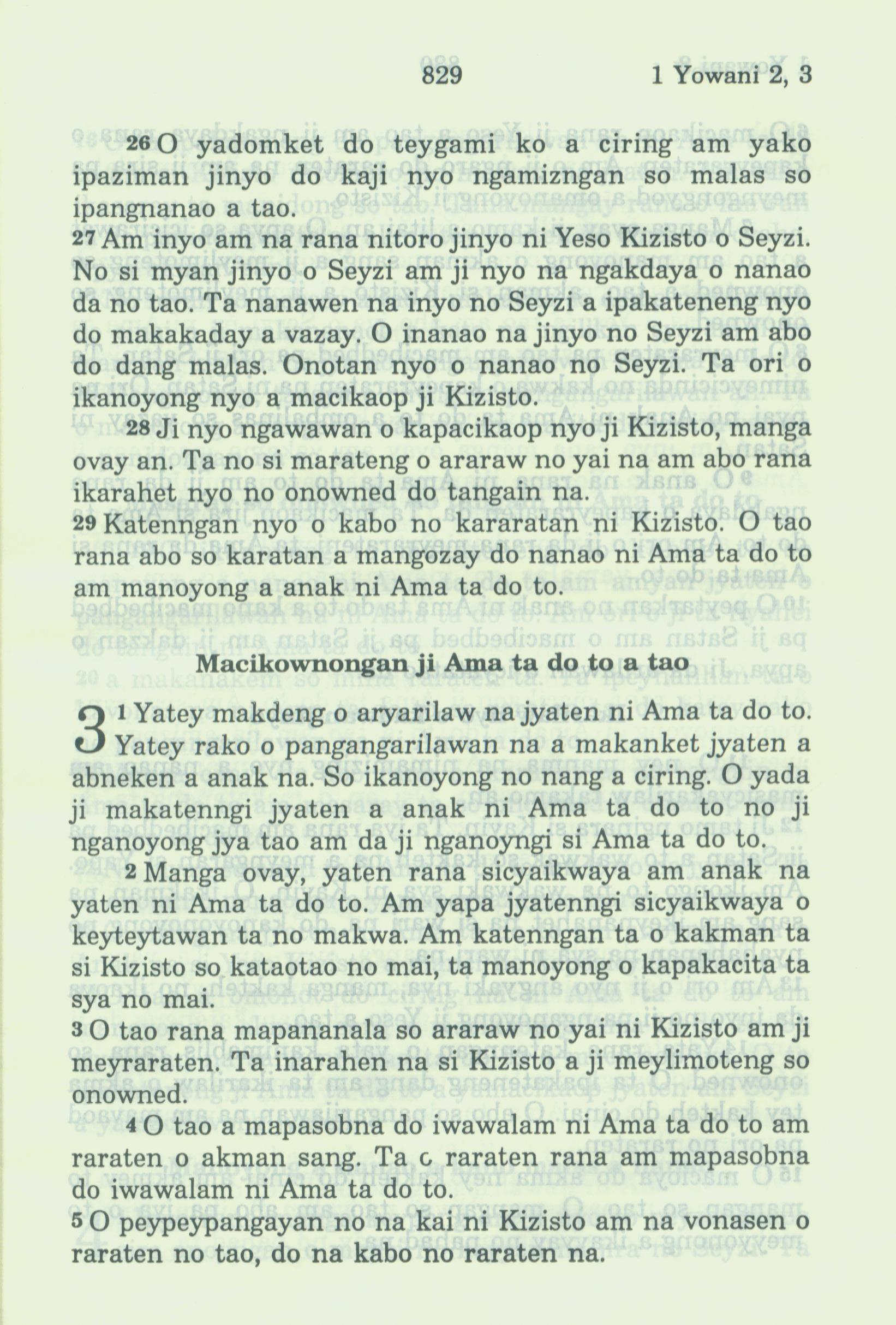 1994年新約全書 約翰一書 2 章 26 節到 3 章 5 節