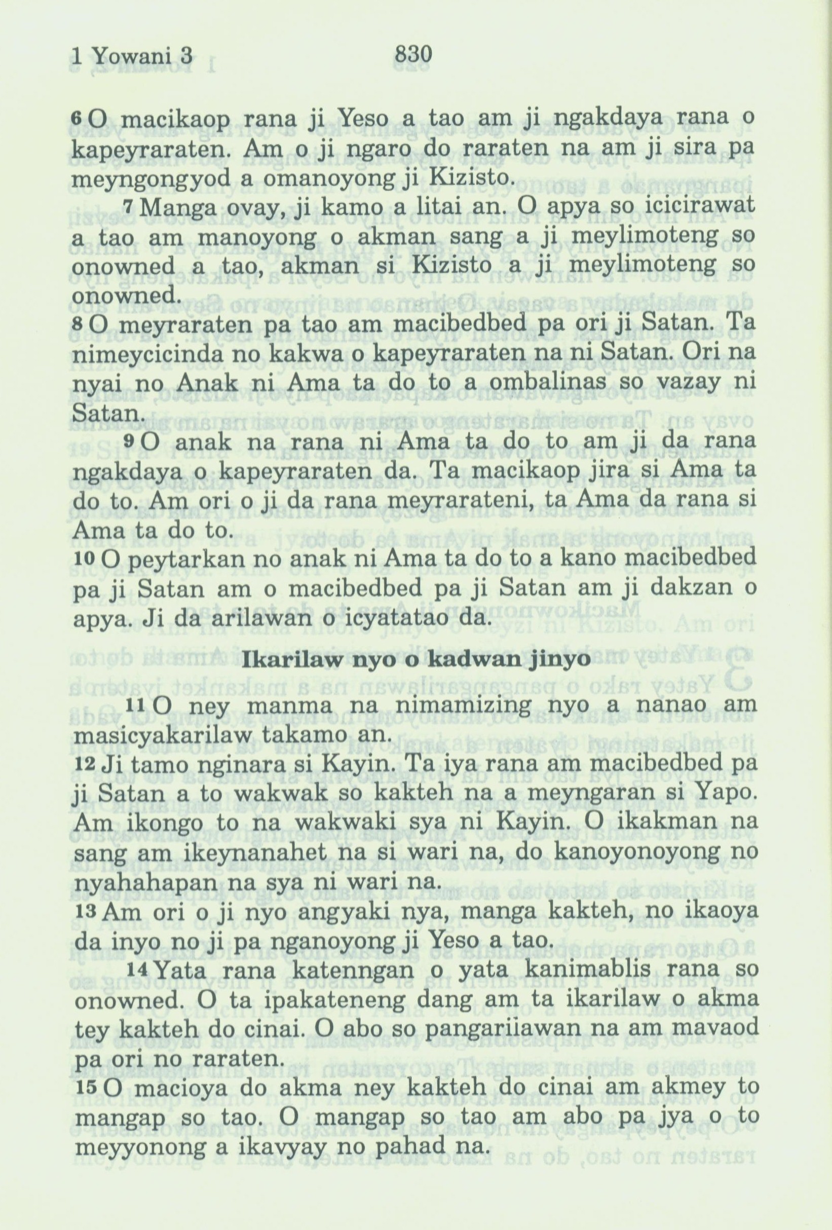 1994年新約全書 約翰一書 3 章 6 節到 3 章 15 節
