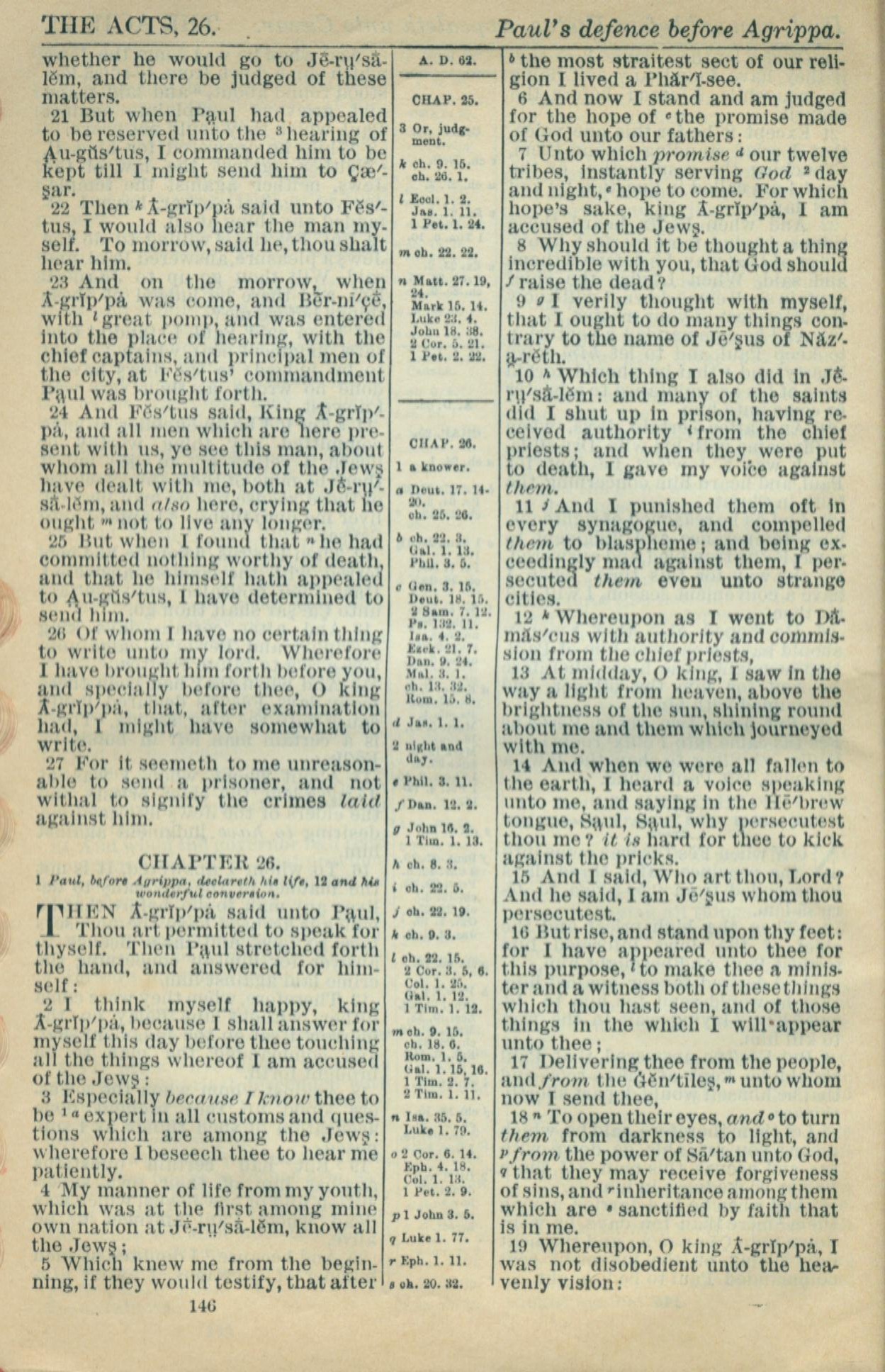1916年Holy Bible 使徒行傳 25 章 21 節到 26 章 19 節