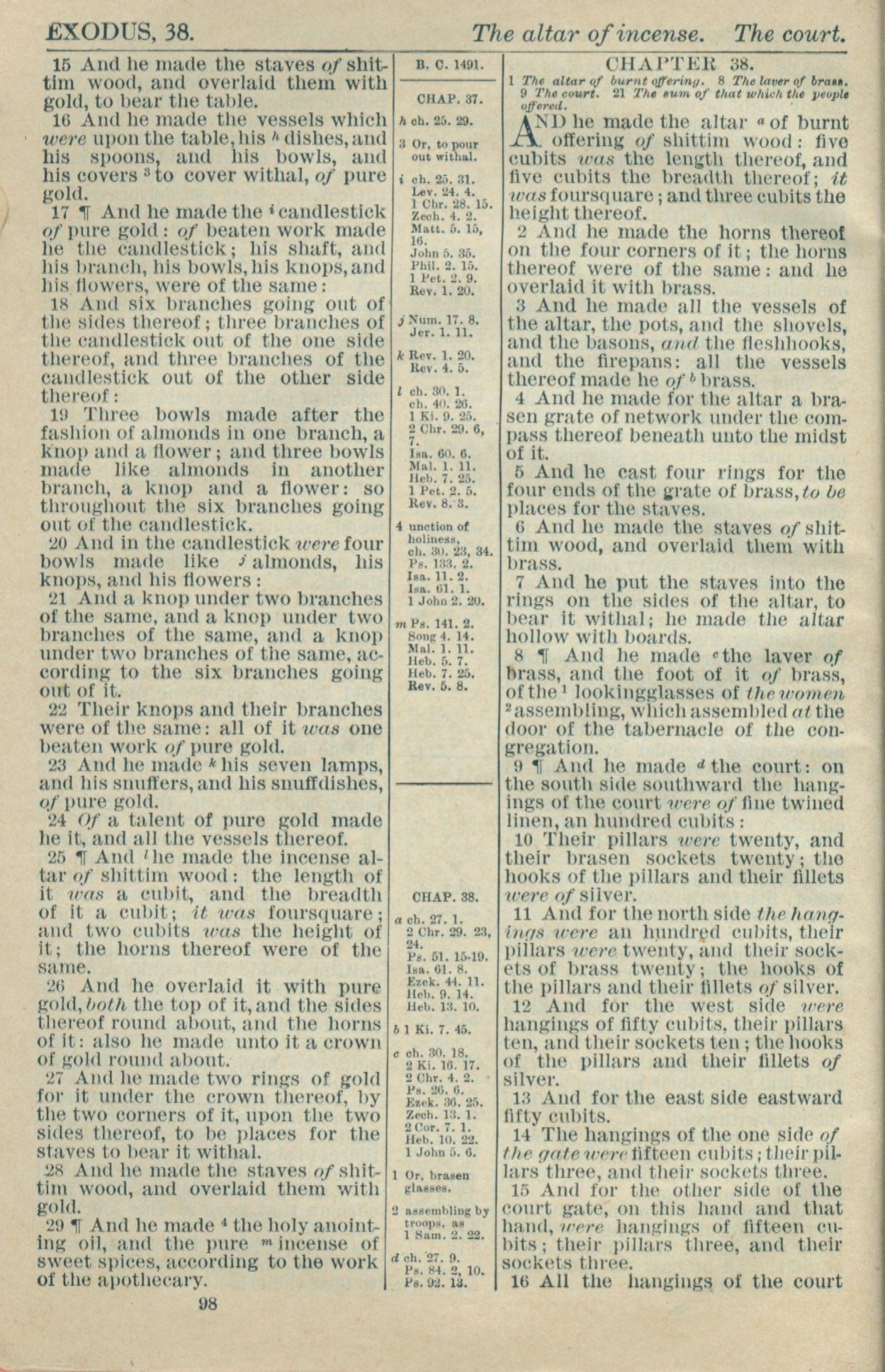 1916年Holy Bible 出埃及記 37 章 15 節到 38 章 16 節