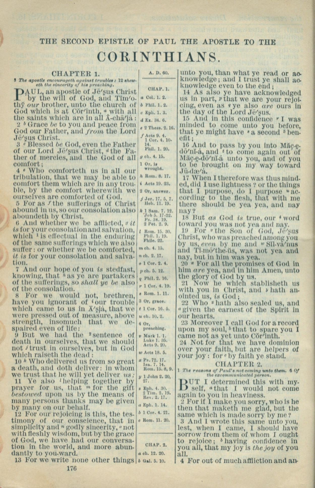 1916年Holy Bible 哥林多後書 1 章 1 節到 2 章 4 節