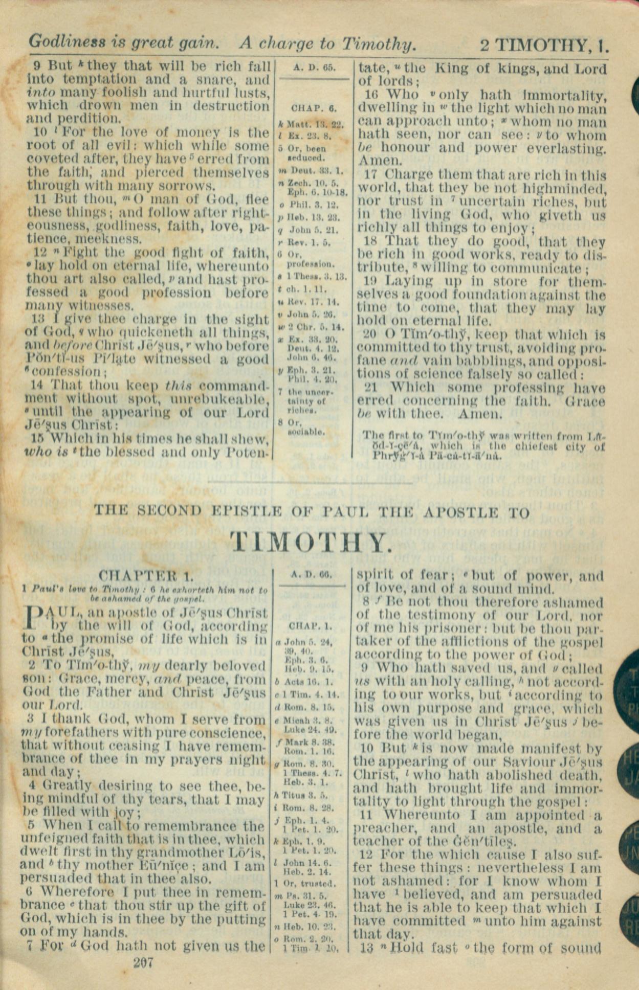 1916年Holy Bible 提摩太前書 7 章 9 節到 7 章 21 節