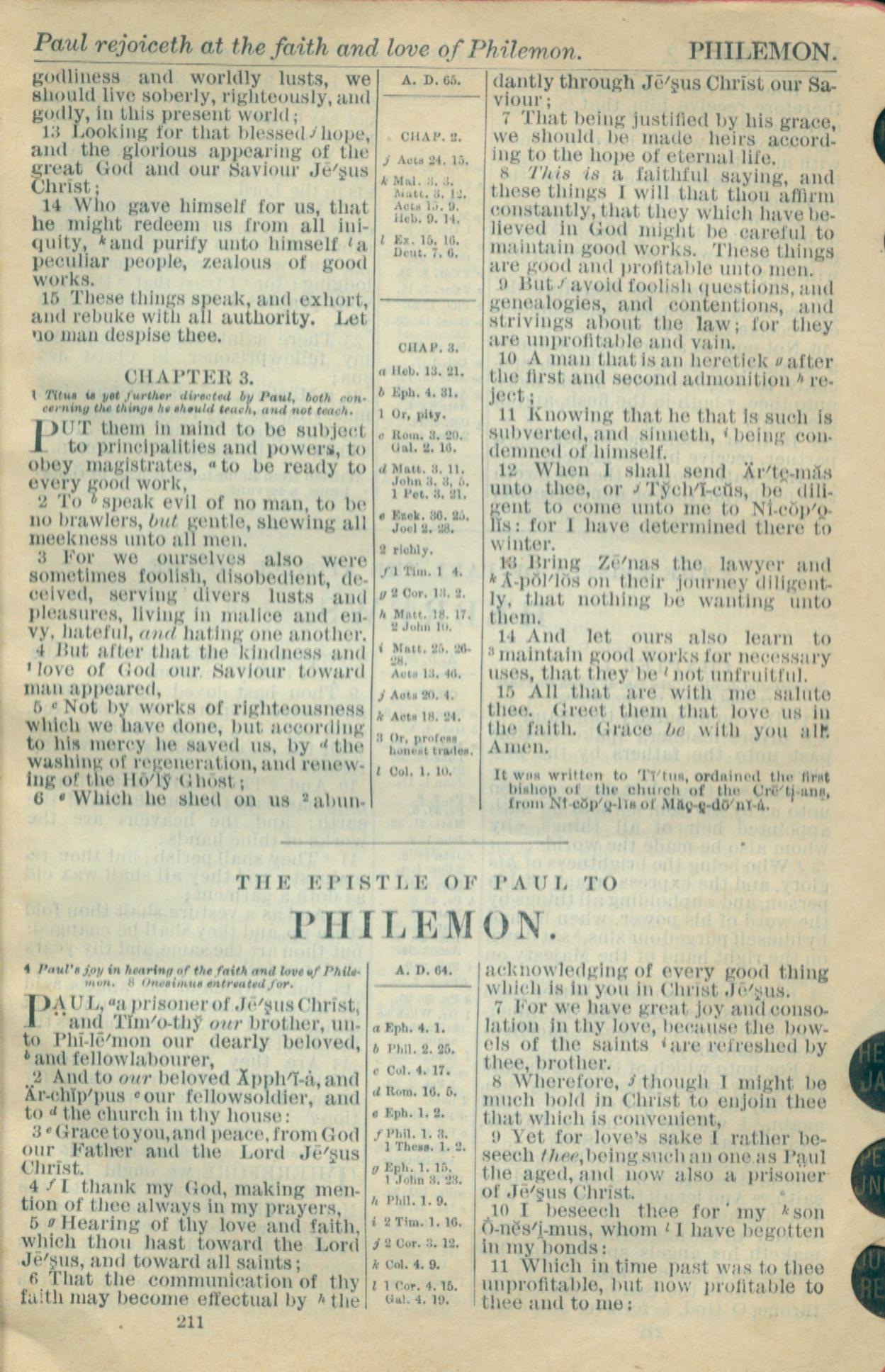 1916年Holy Bible 腓利門書 1 章 1 節到 1 章 11 節
