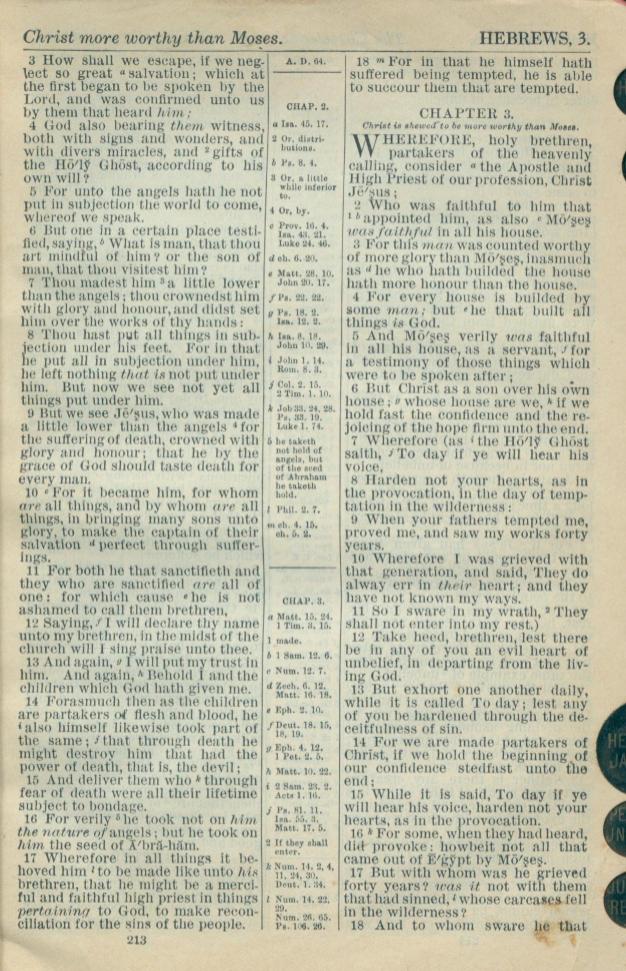 1916年Holy Bible 希伯來書 2 章 3 節到 3 章 18 節