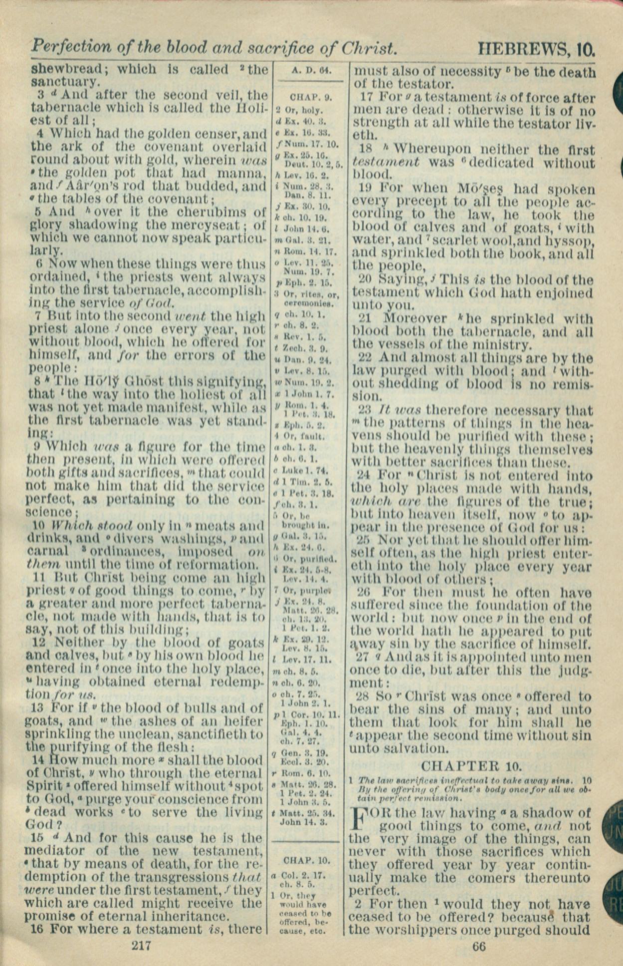 1916年Holy Bible 希伯來書 9 章 3 節到 10 章 2 節
