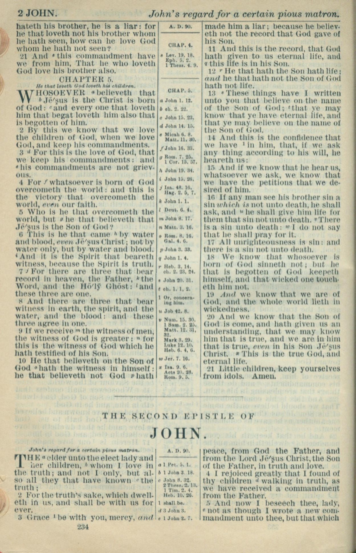 1916年Holy Bible 約翰二書 1 章 1 節到 1 章 5 節