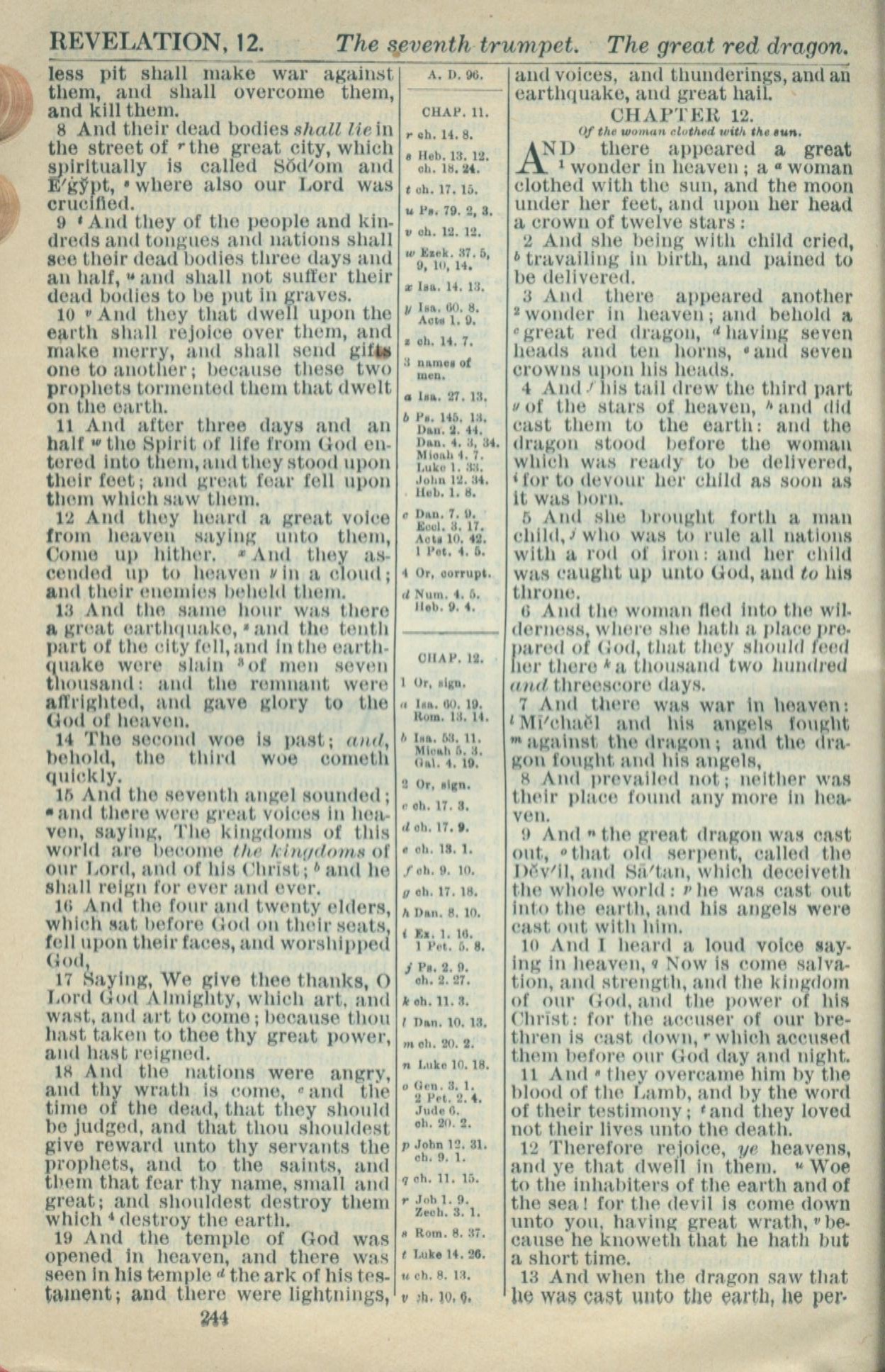 1916年Holy Bible 啟示錄 11 章 8 節到 12 章 13 節