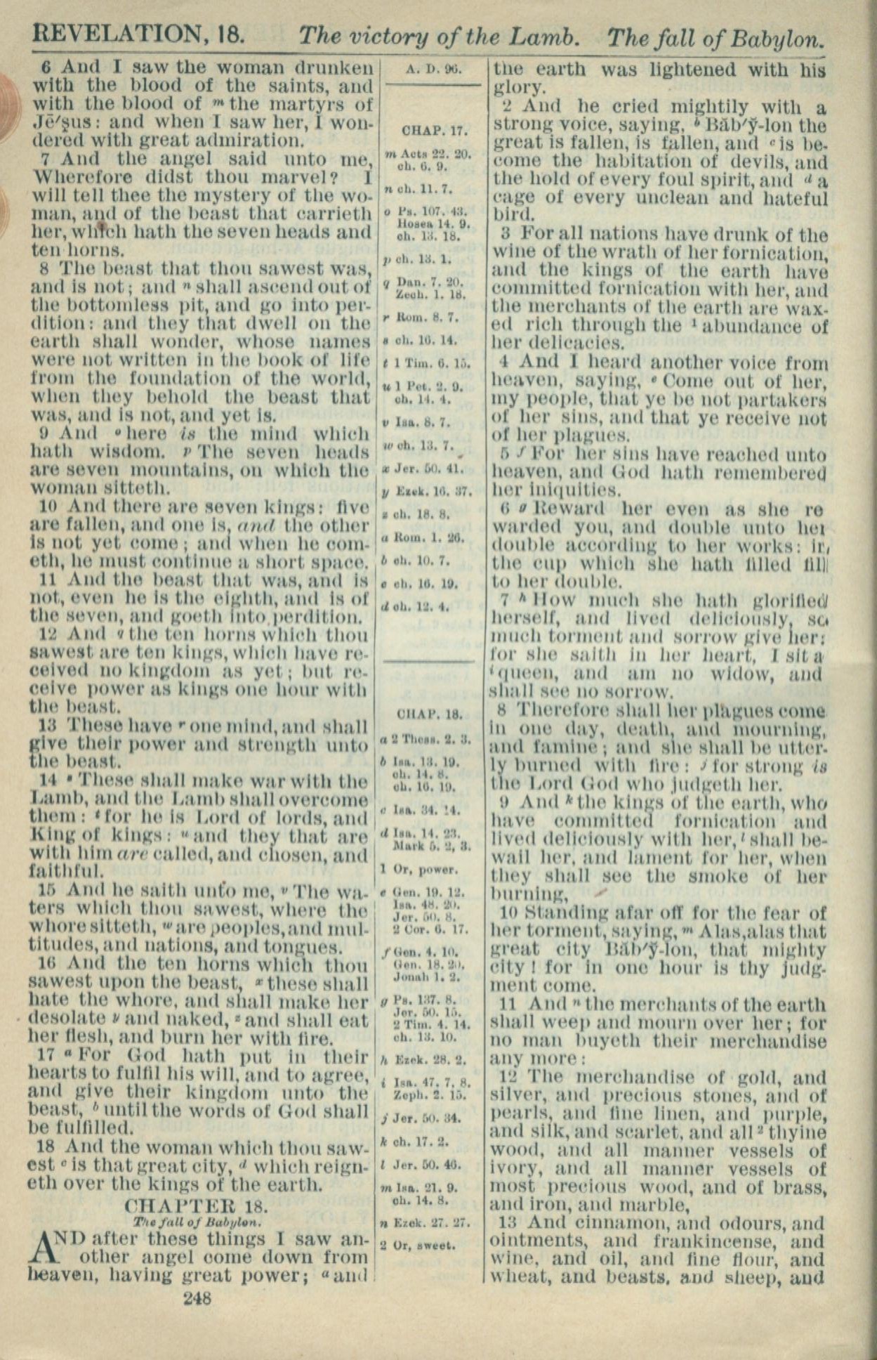 1916年Holy Bible 啟示錄 17 章 6 節到 18 章 13 節