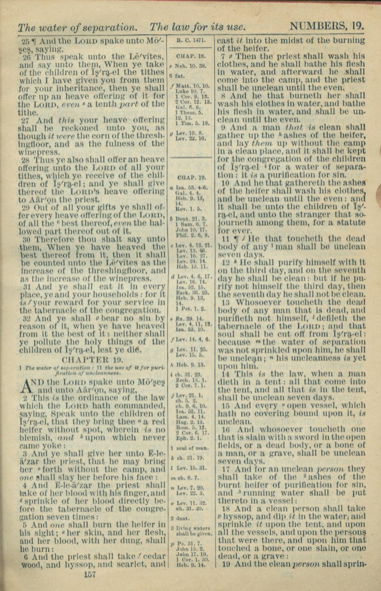 1916年Holy Bible 民數記 18 章 25 節到 19 章 19 節